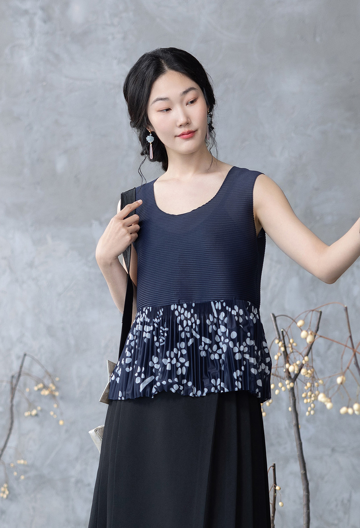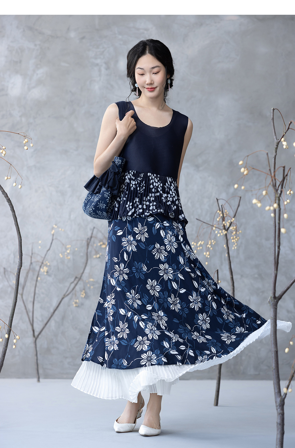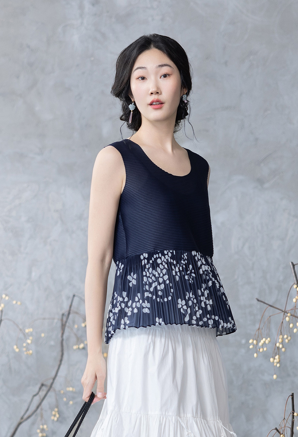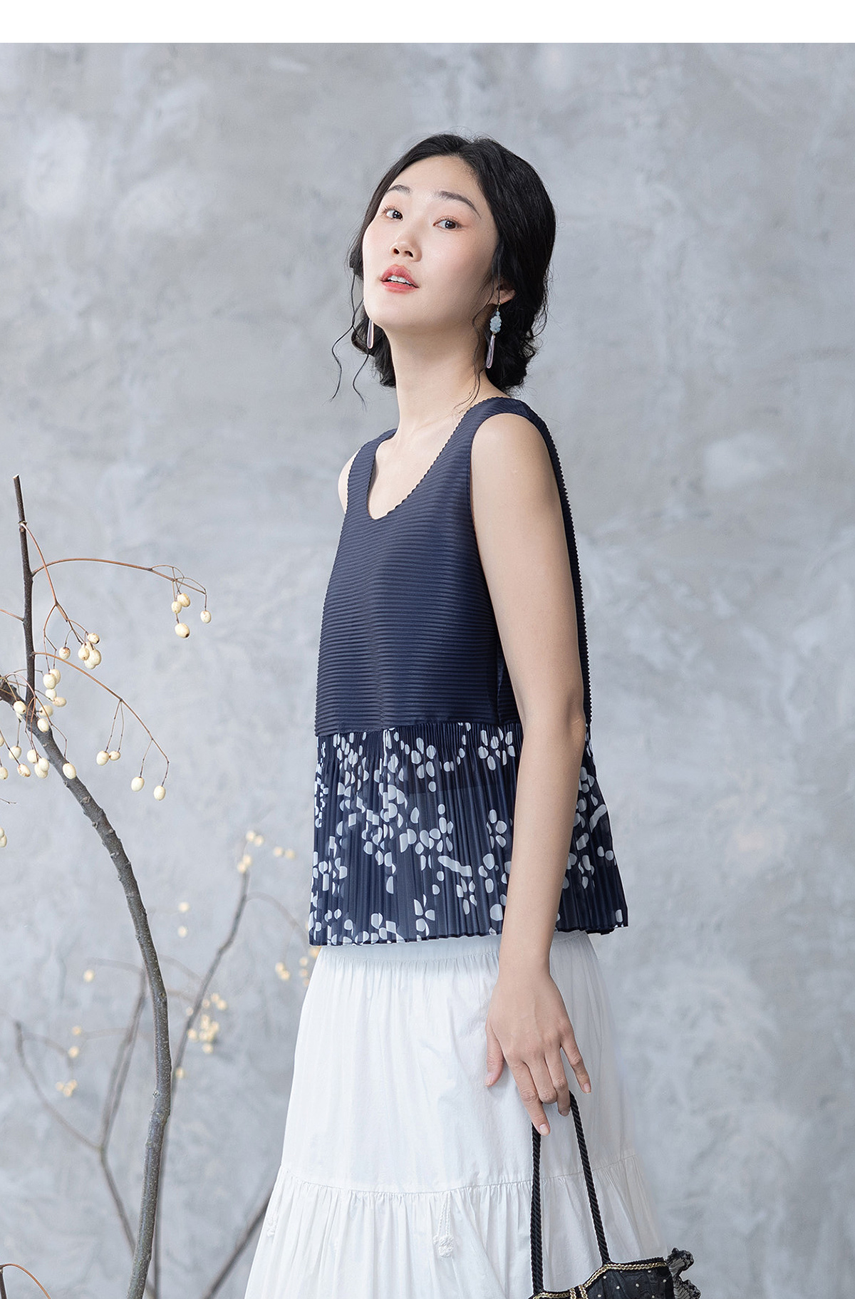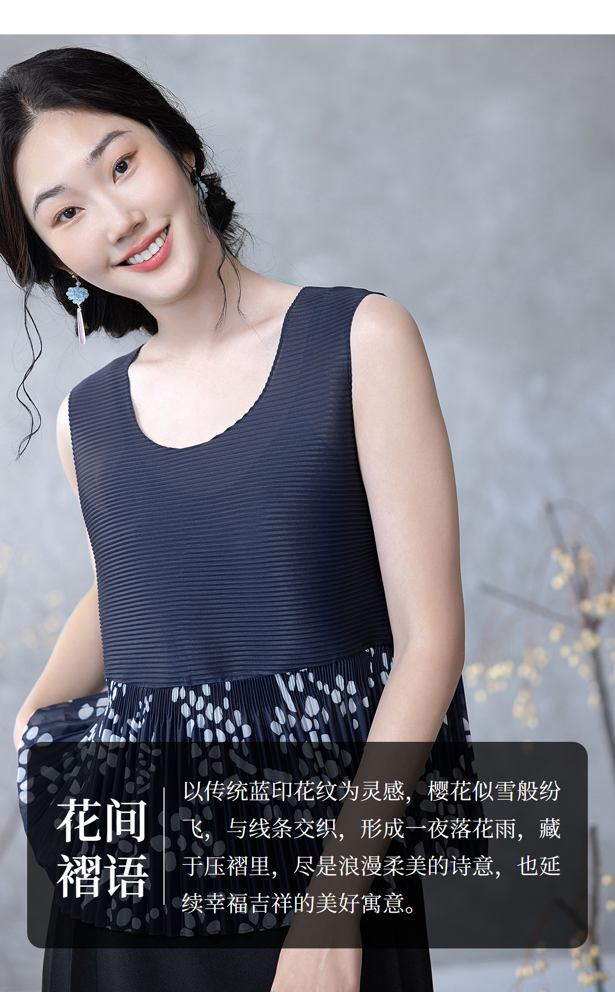 【林栖设计小店】压褶拼接传统印花背心2025春季新品复古肌理感无袖上衣女1951101