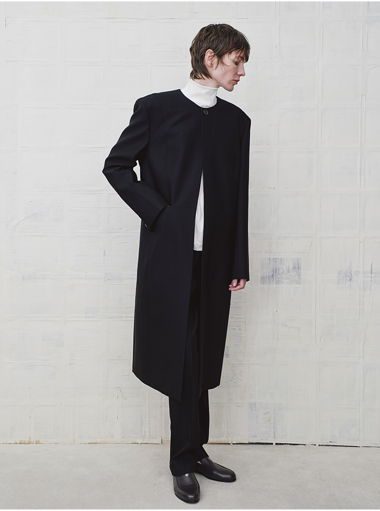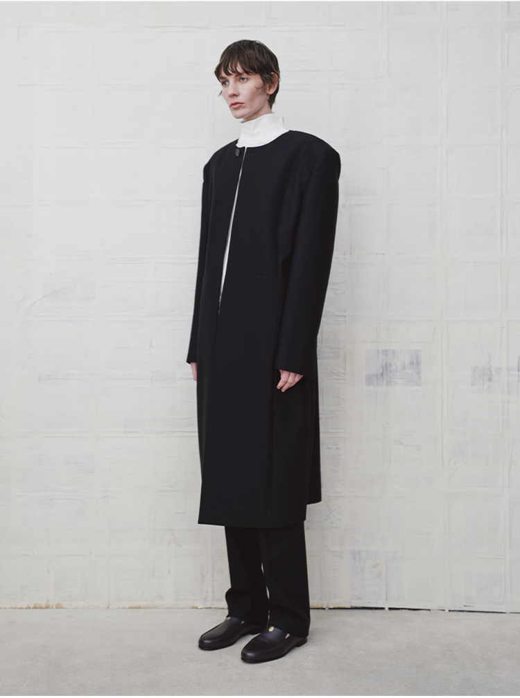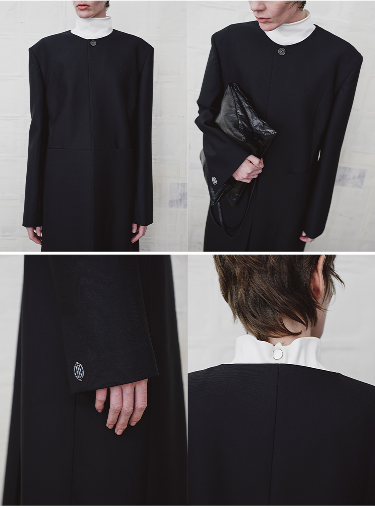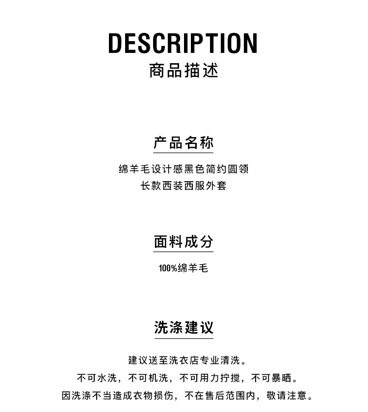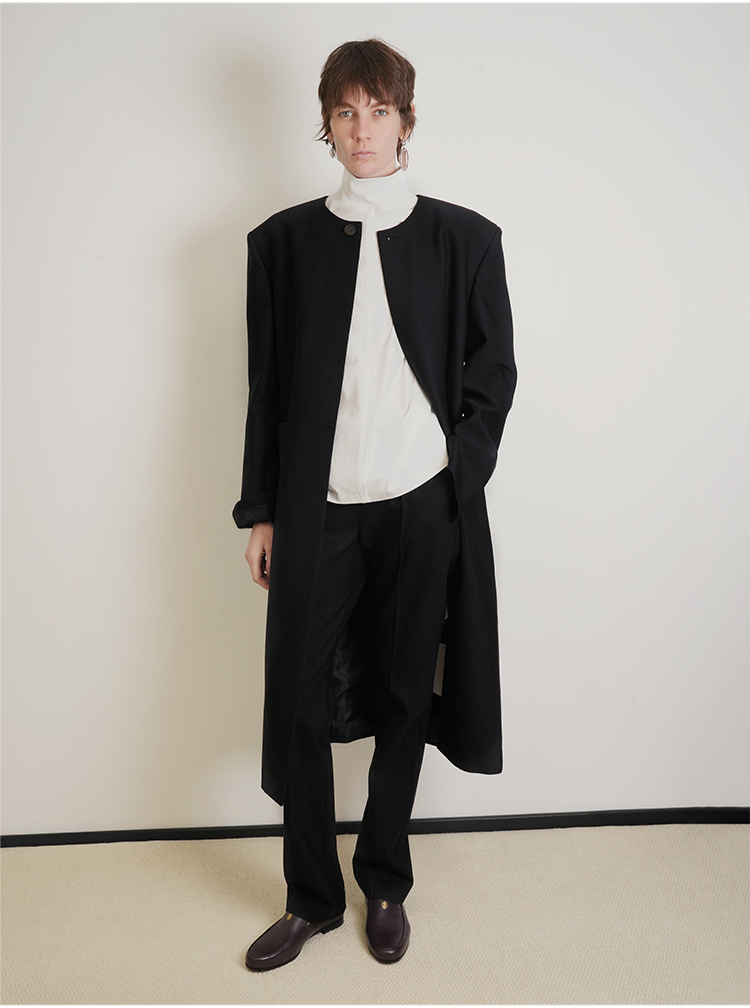 HIDEMI 绵羊毛设计感黑色简约圆领长款西装西服外套
