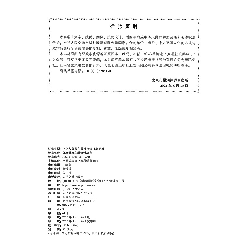 书名:公路避险车道设计规范(JTG/T 3381-05—2025)