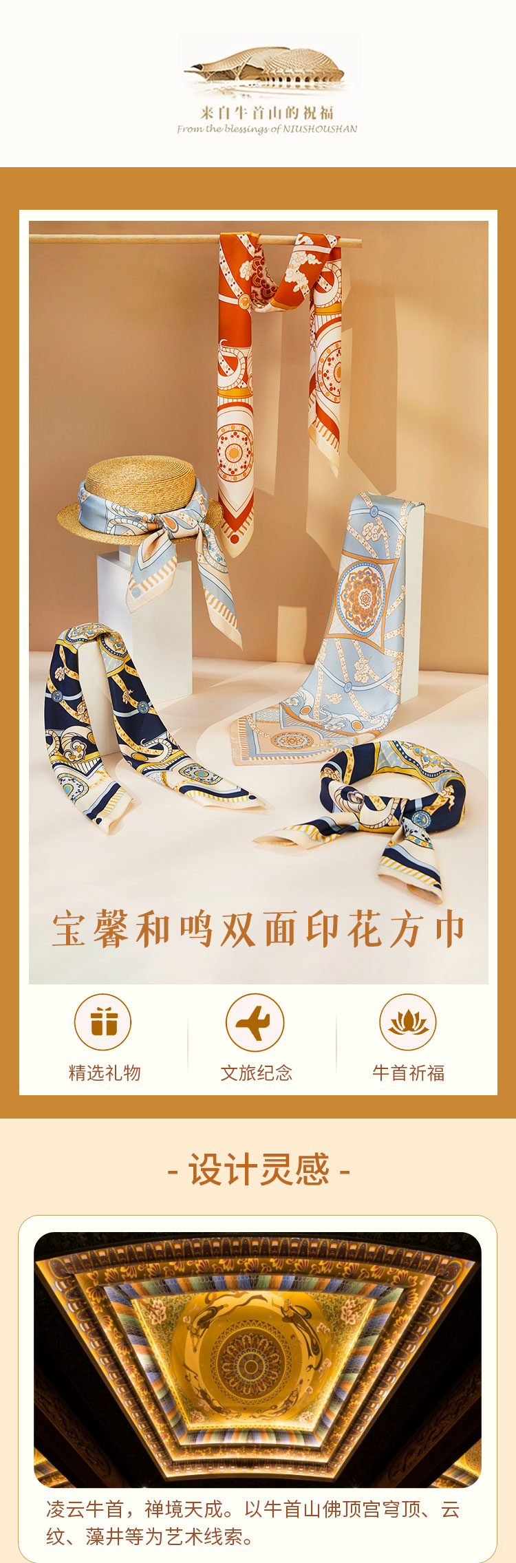 牛首山万事利联名宝馨和鸣系列双面印花方巾真丝复古送妈妈节日礼