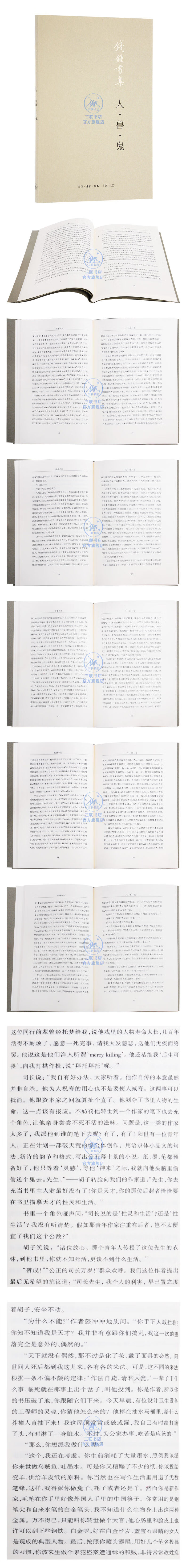 《人·兽·鬼(平装新版)》是钱锺书的短篇小说集。包括《上帝的梦》、《猫》、《灵感》、《纪念》四部短篇小说。