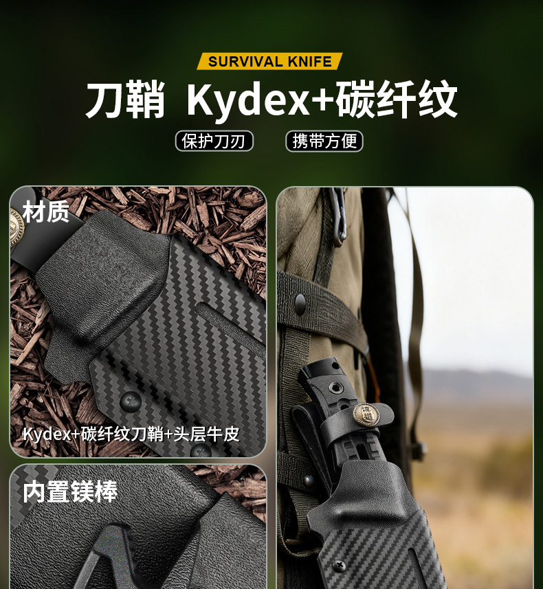 汉道洛克柳叶PLUS户外求生刀具野外生存刀高硬度直刀