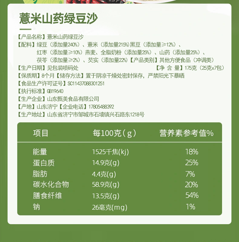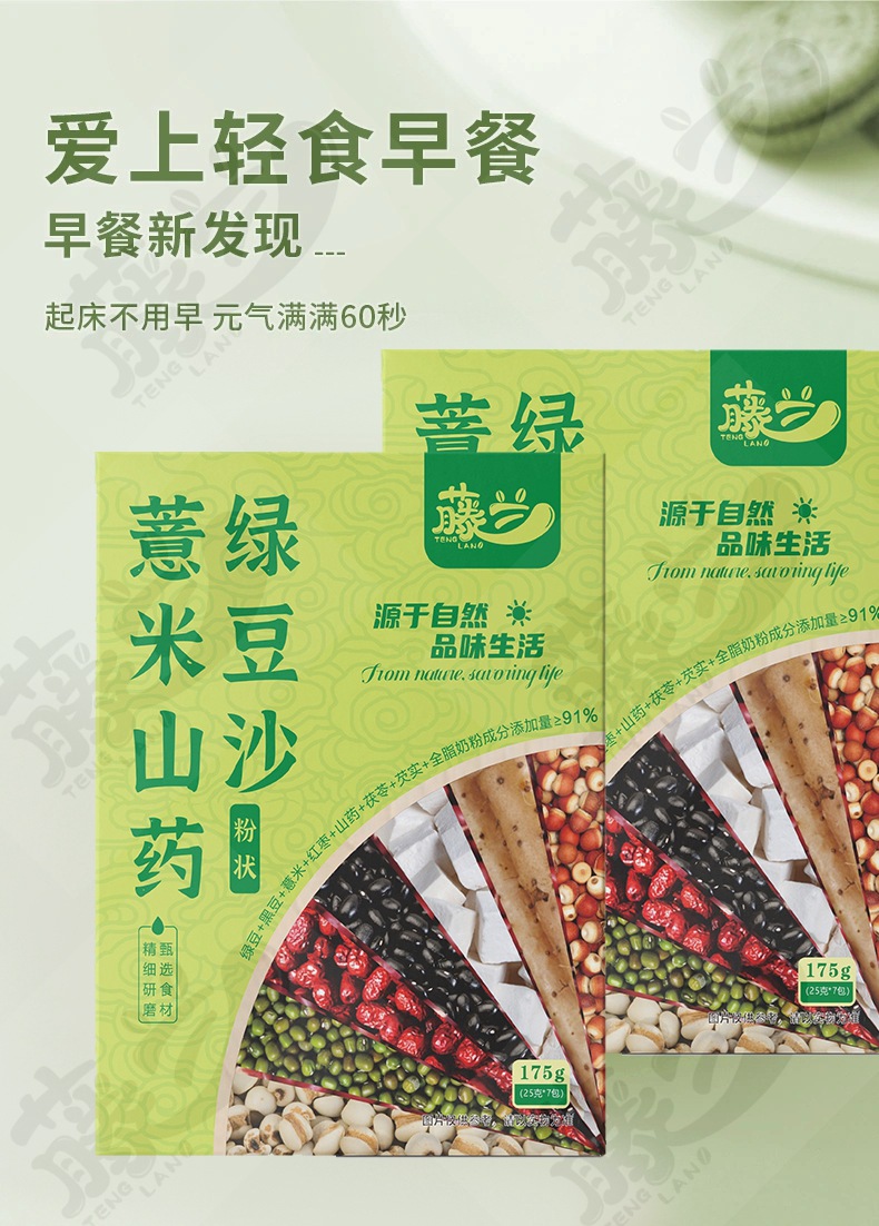 【藤兰薏米山药绿豆沙】60秒热冲随享,香醇可口营养易吸收,口感独特细腻,175克7小包夏日饮品独立包装代餐早餐QQ