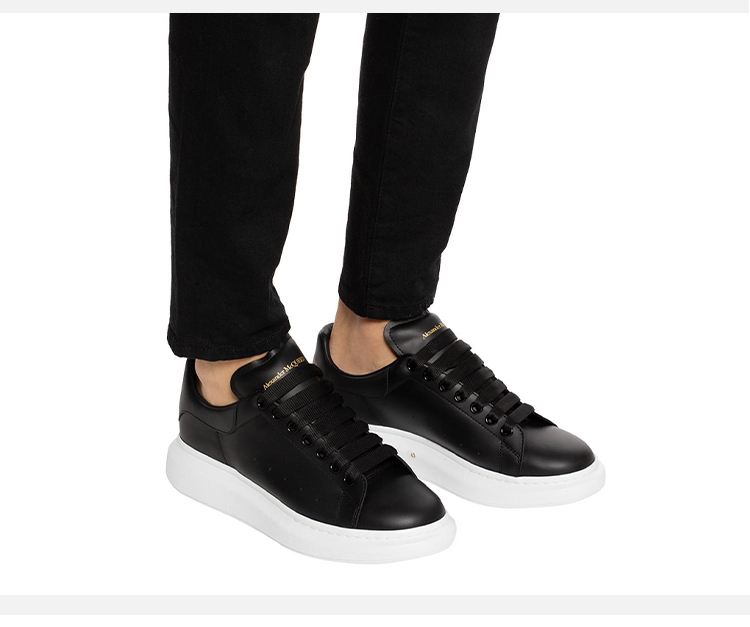 ALEXANDER MCQUEEN 亚历山大麦昆 男士黑色真皮系带大廓形休闲运动鞋 黑色 553680 WHGP5 1000