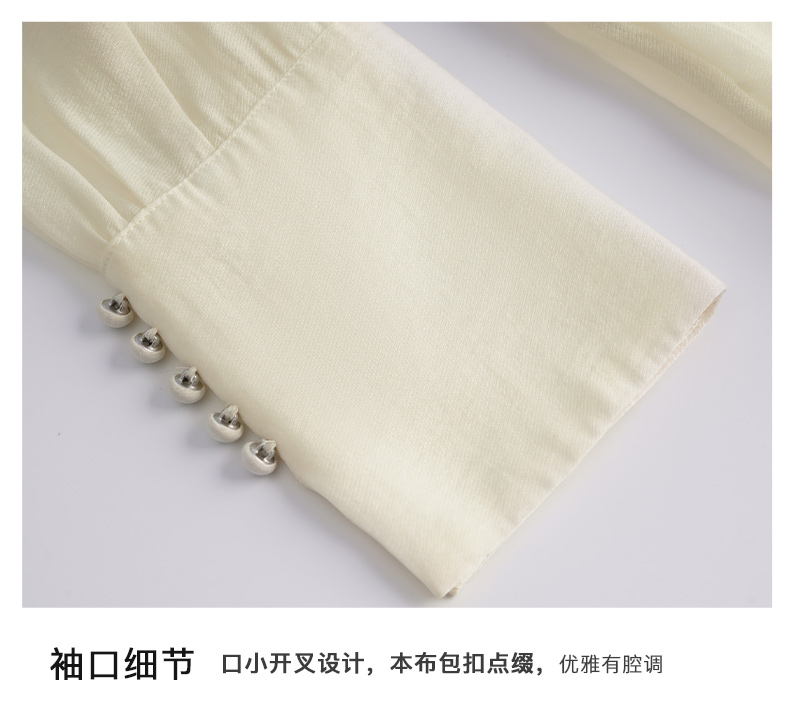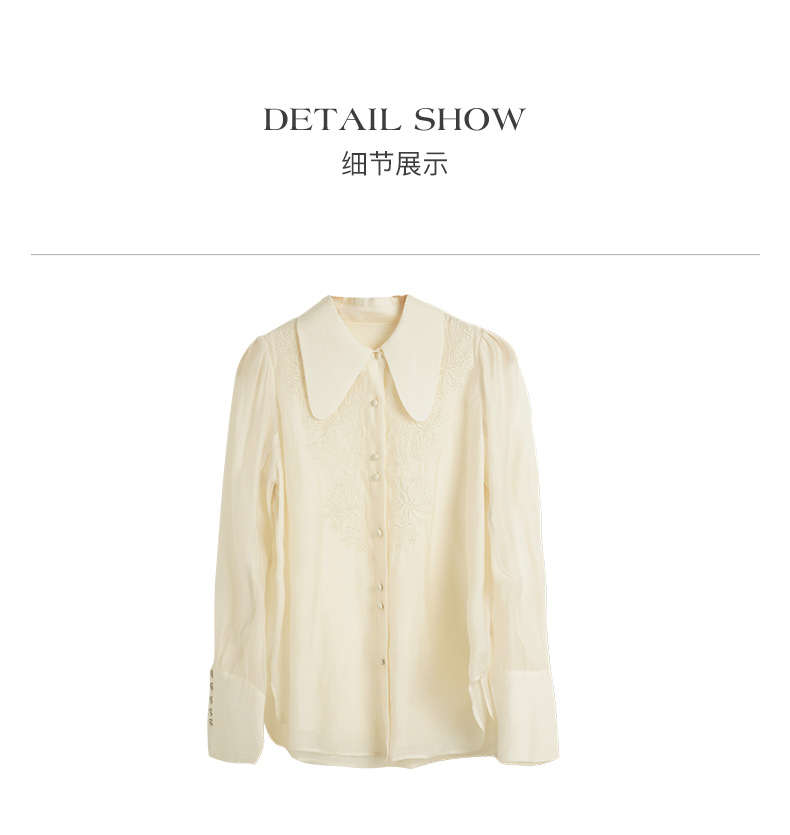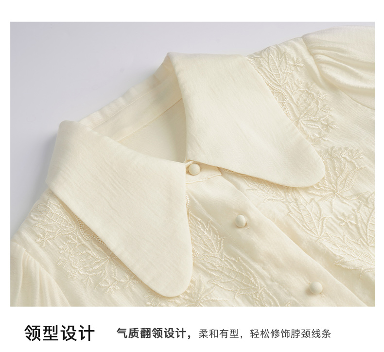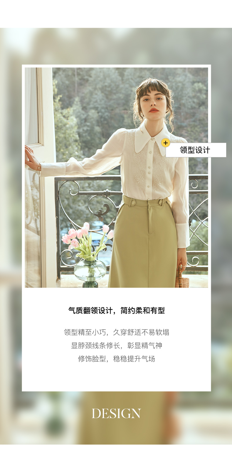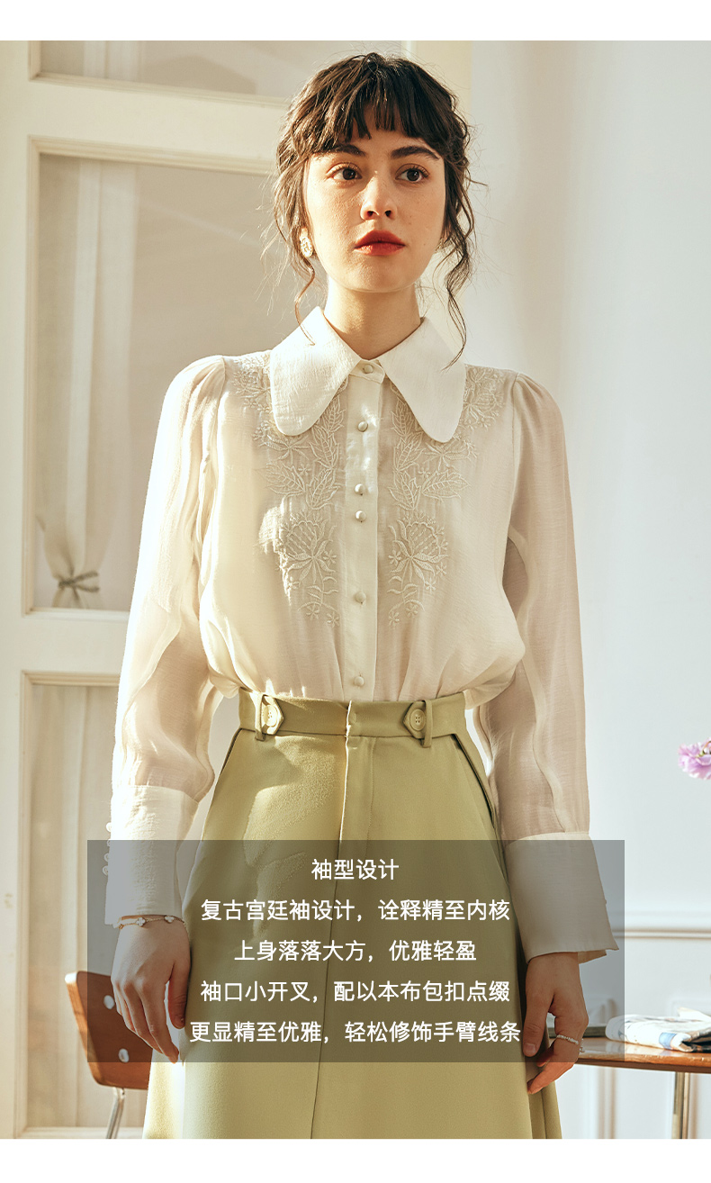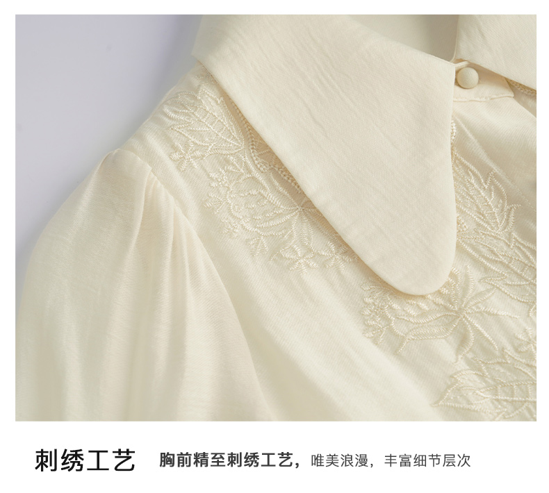 OLrain欧芮儿法式杏黄色蕾丝雪纺衫女春季2023年新款气质刺绣衬衣
