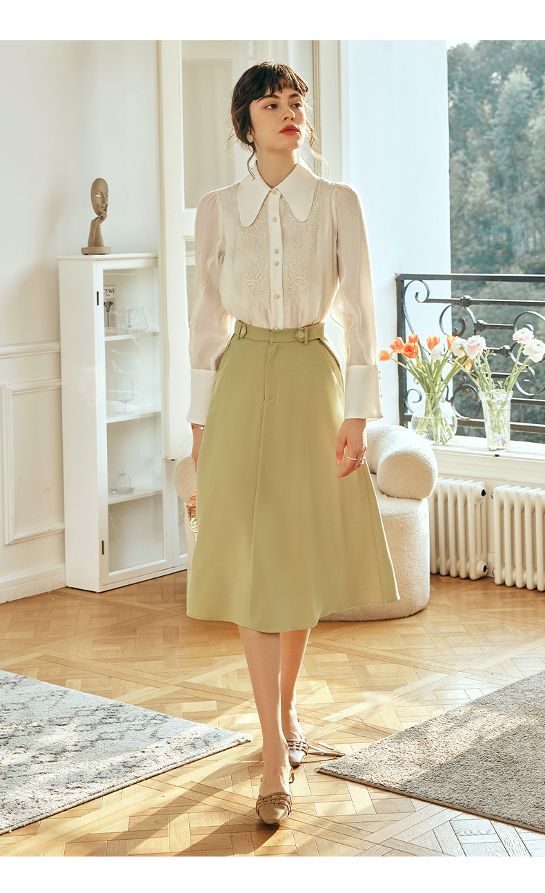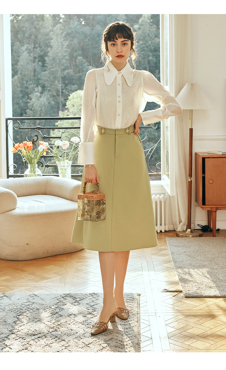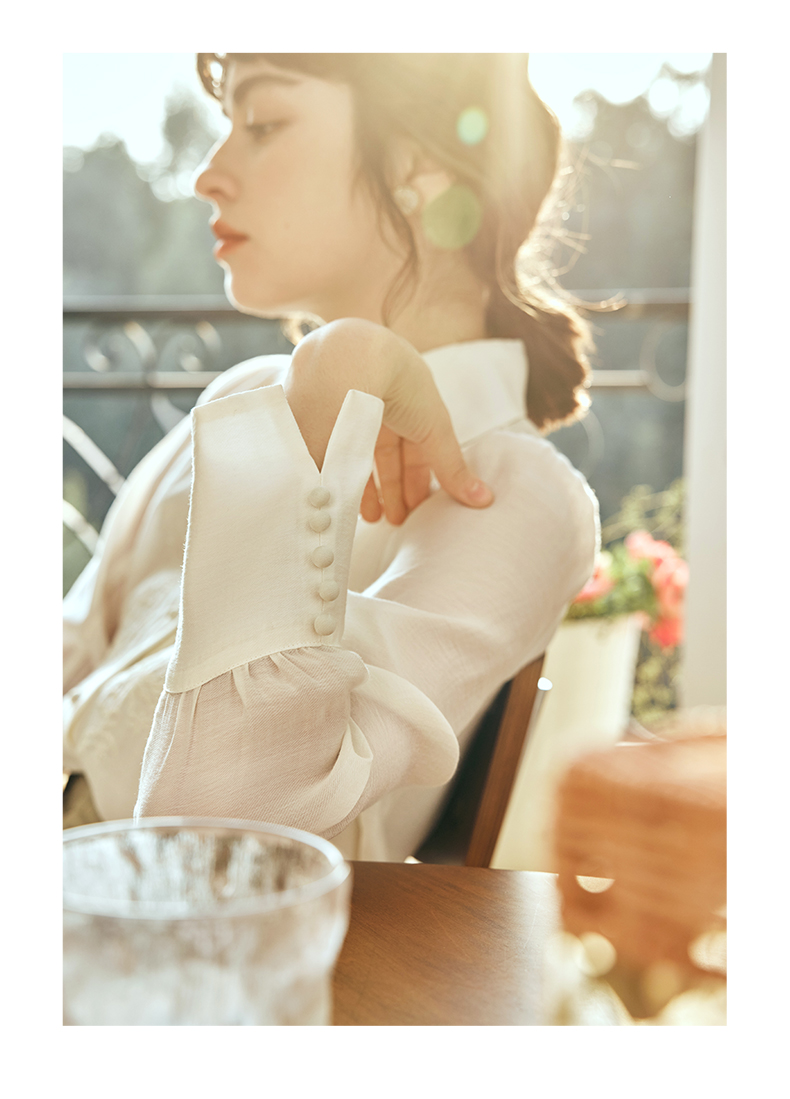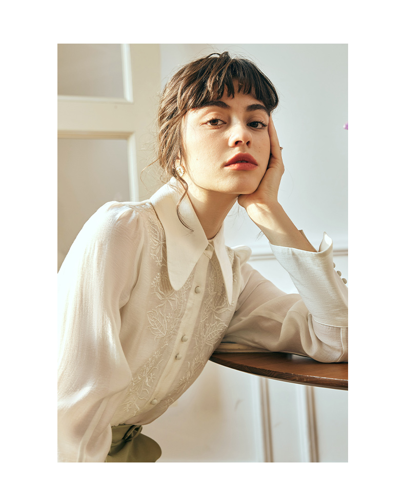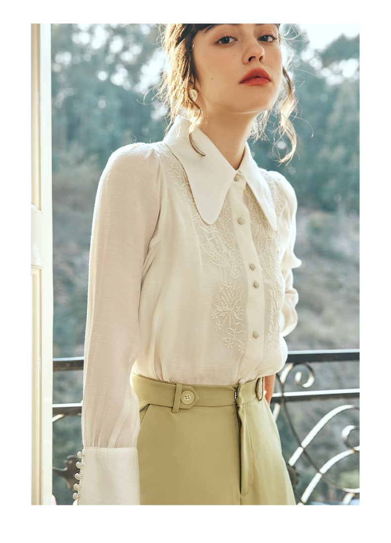 OLrain欧芮儿法式杏黄色蕾丝雪纺衫女春季2023年新款气质刺绣衬衣