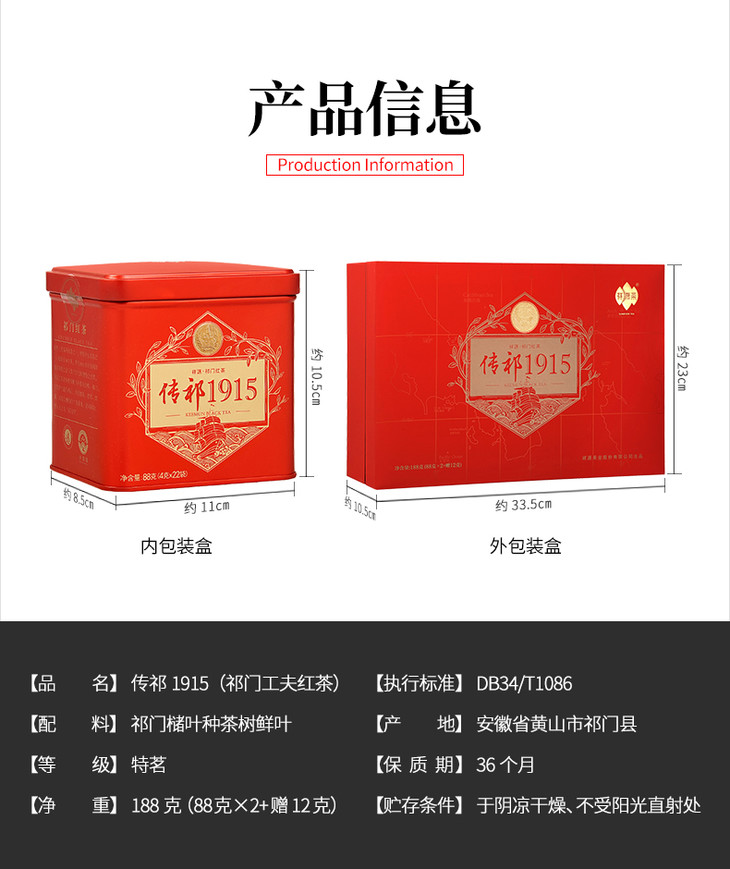 祥源茶 传祁1915 祁门红茶 礼盒装188g