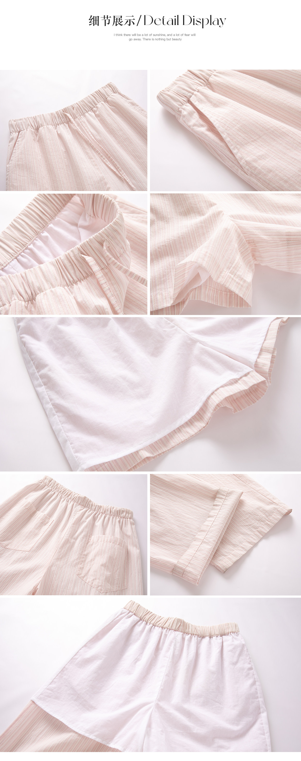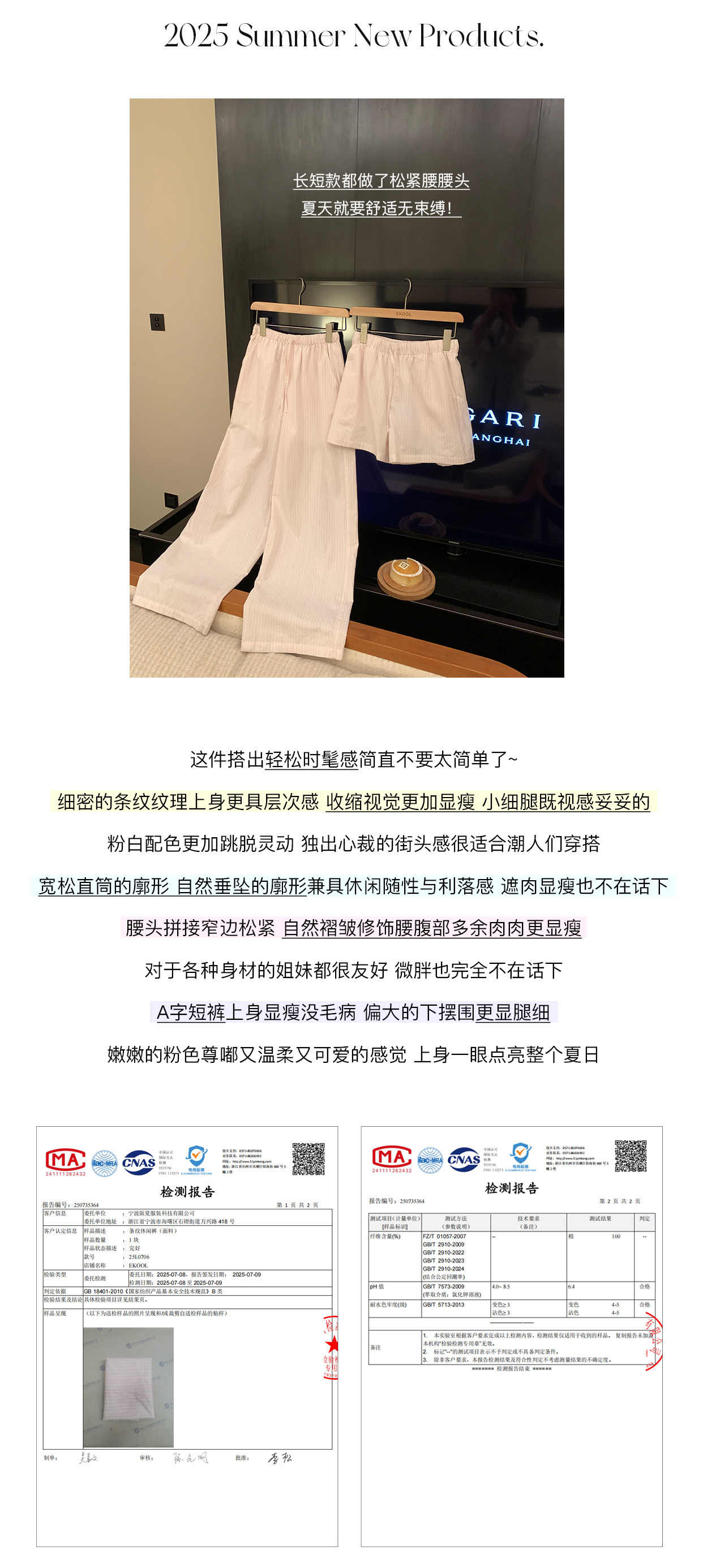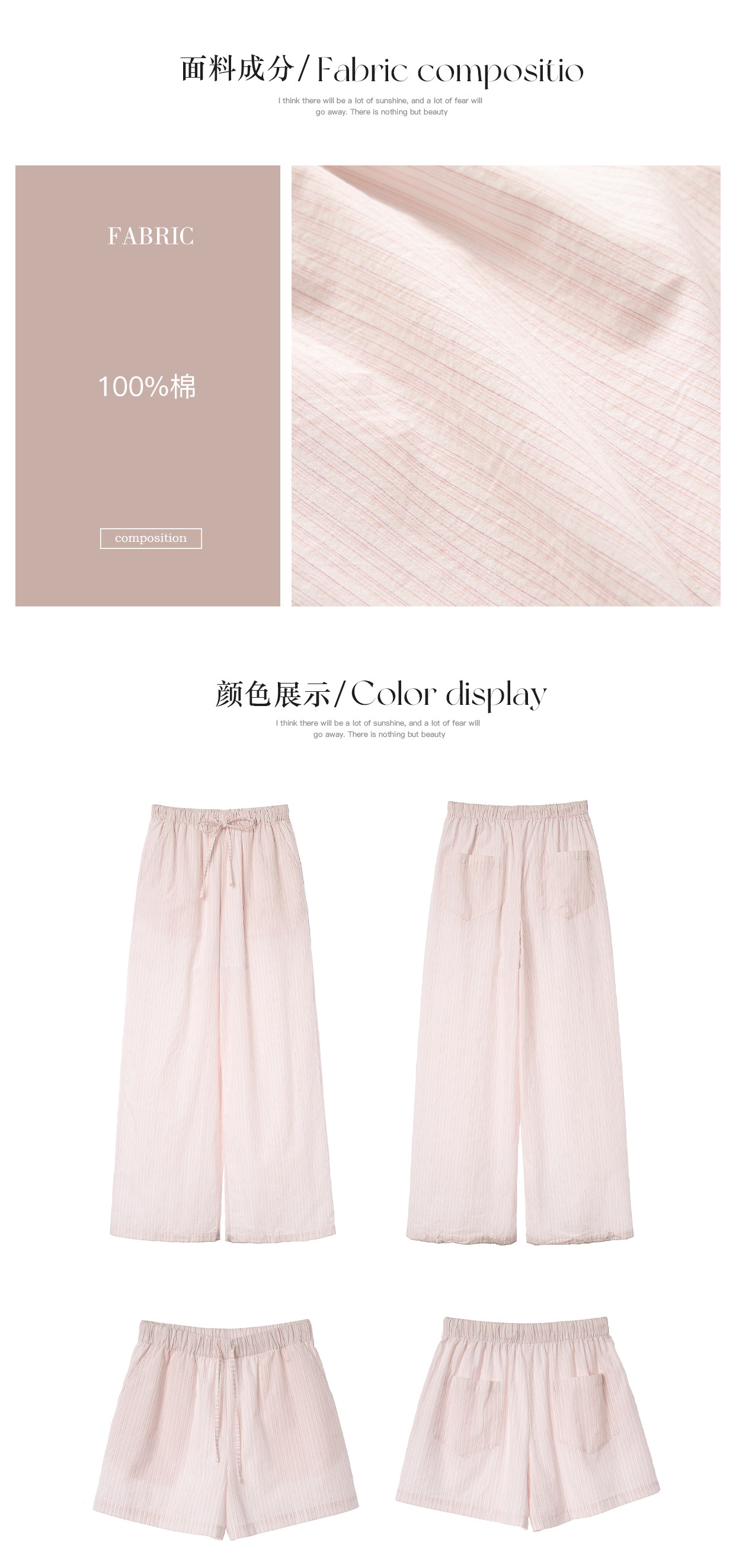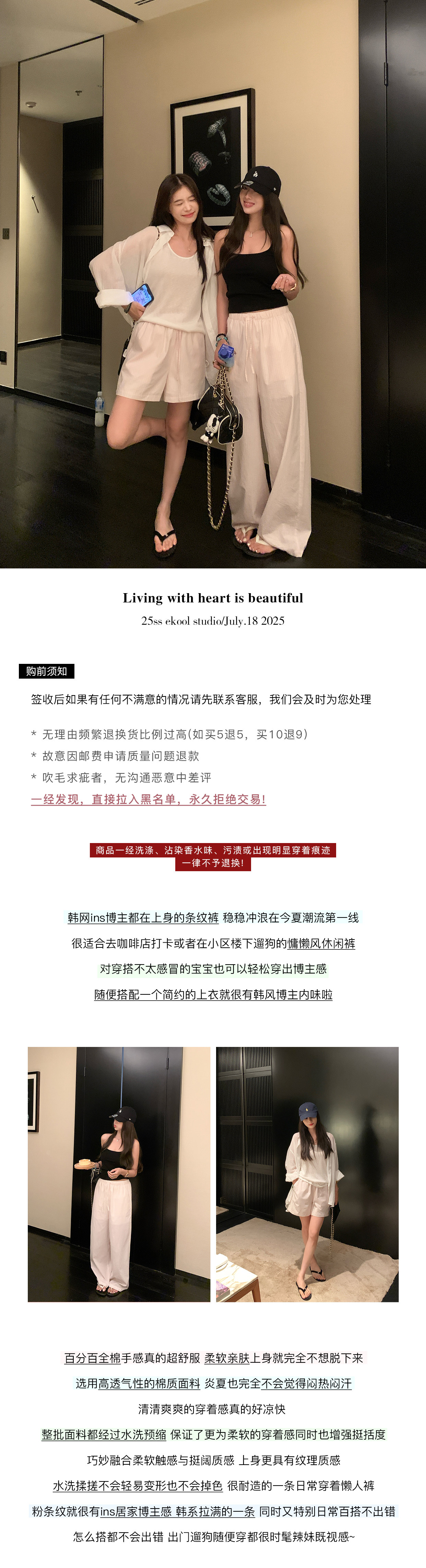 EKOOL衣库 高腰条纹系带短裤女夏季新款宽松百搭显瘦直筒休闲长裤