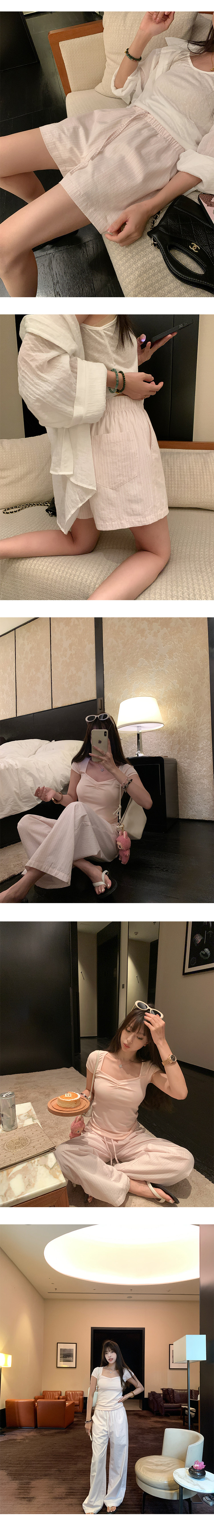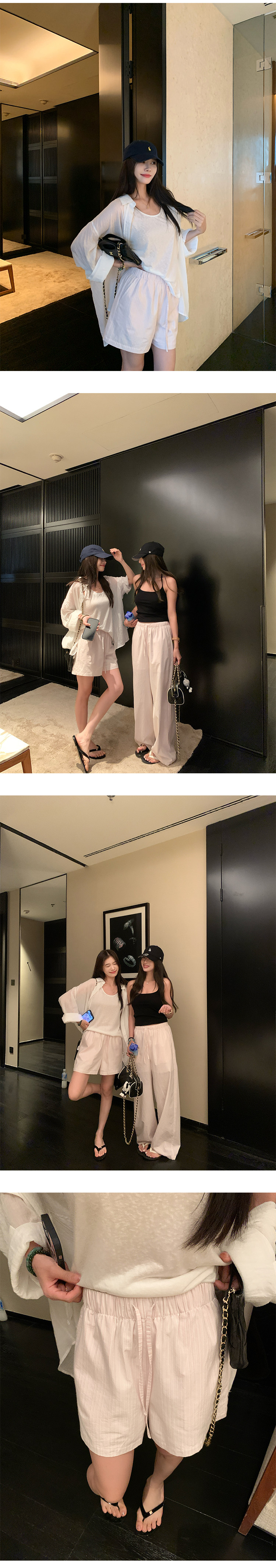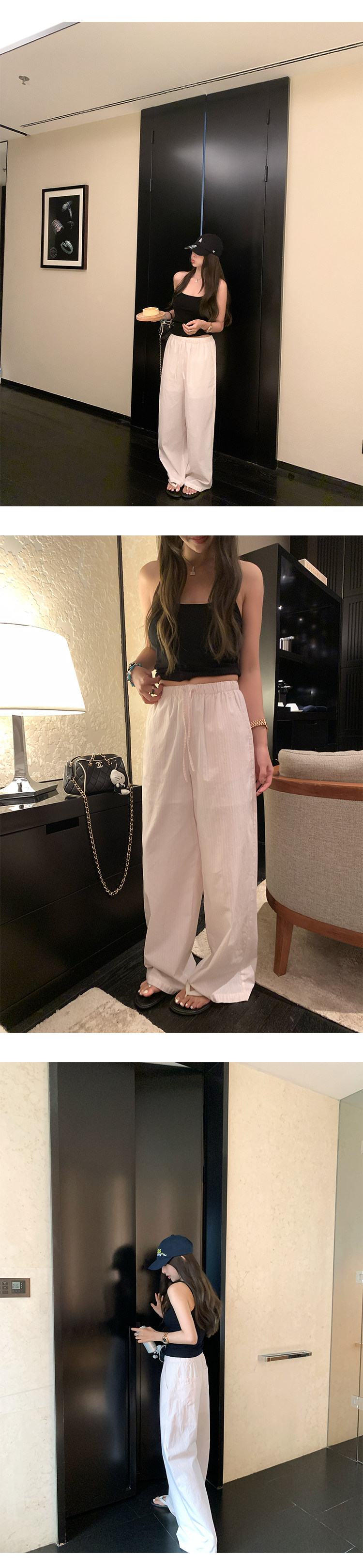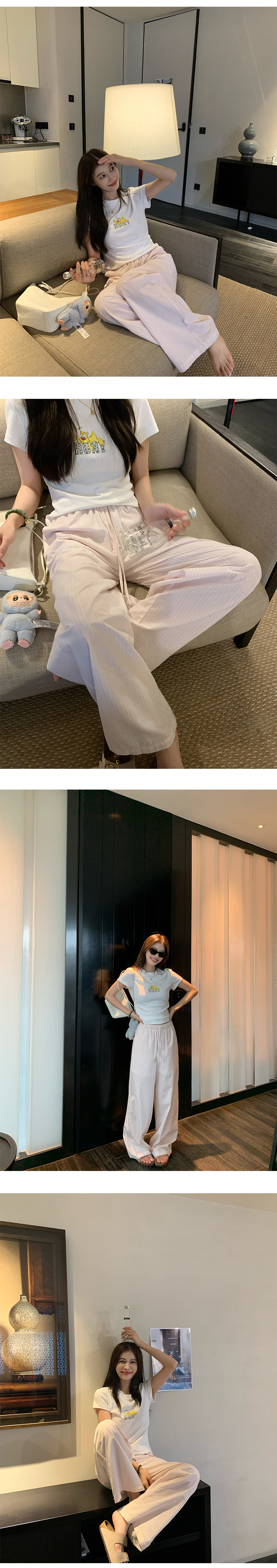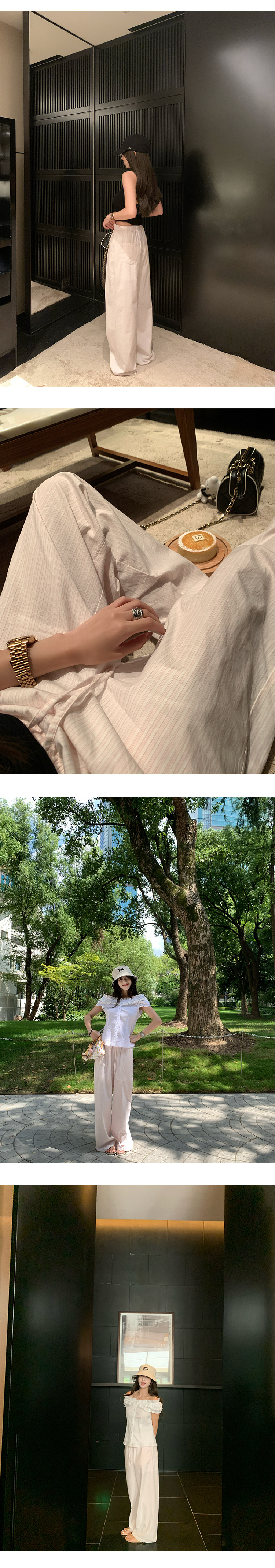 EKOOL衣库 高腰条纹系带短裤女夏季新款宽松百搭显瘦直筒休闲长裤