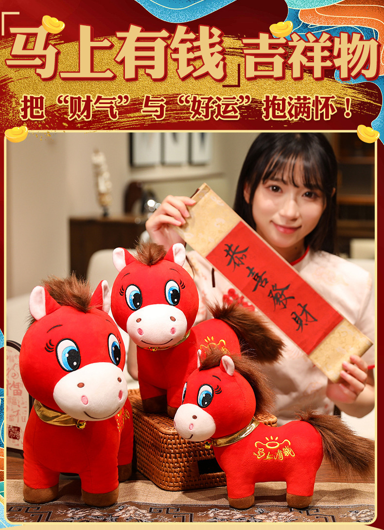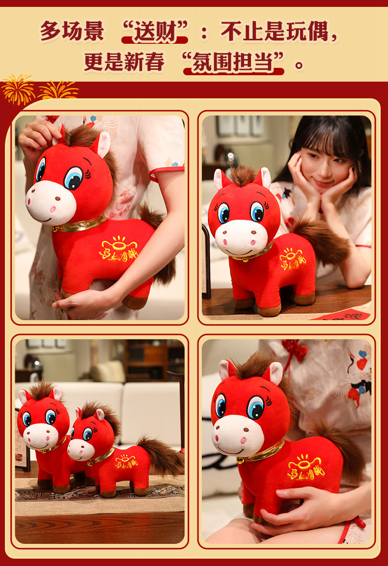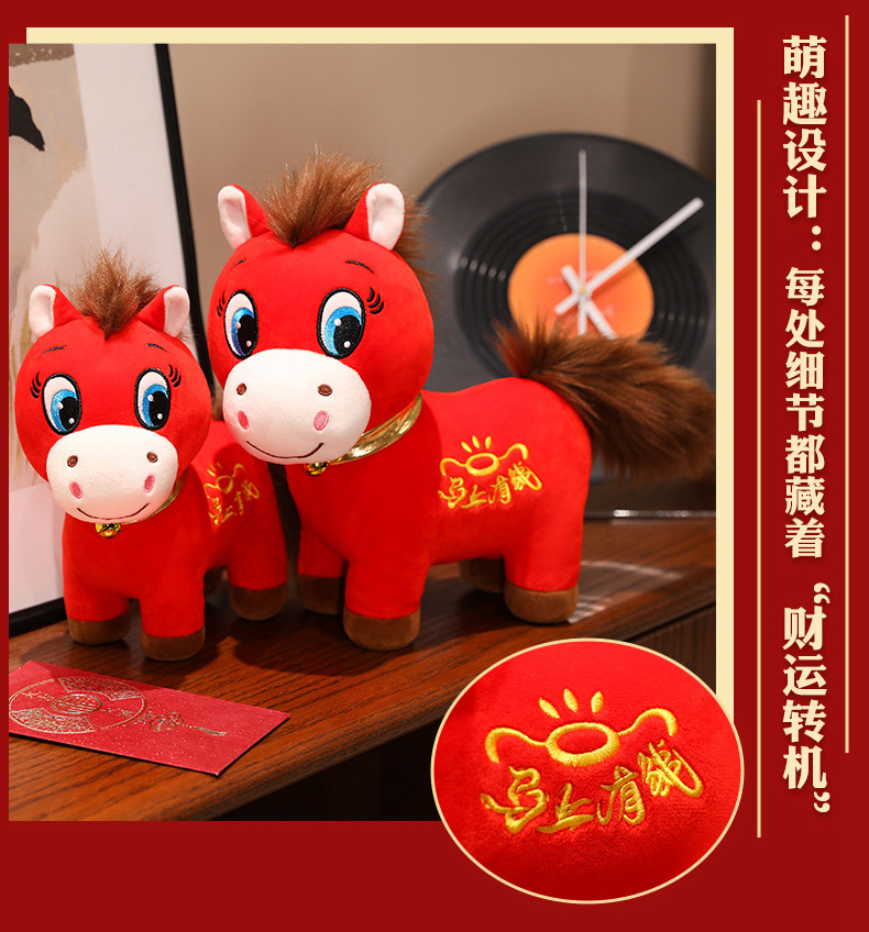 【25cm马年哭哭马】马上有钱吉祥物 爆款同款哭哭小马生肖吉祥物玩偶 毛绒玩具马年公仔玩偶
