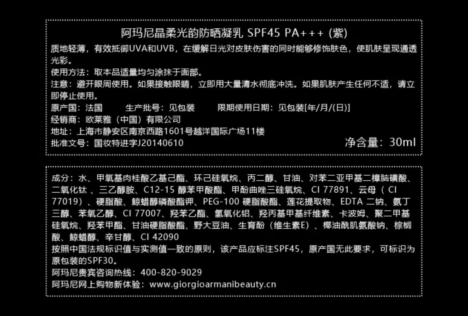 【秒杀】ARMANI 阿玛尼晶柔光韵防晒凝乳
