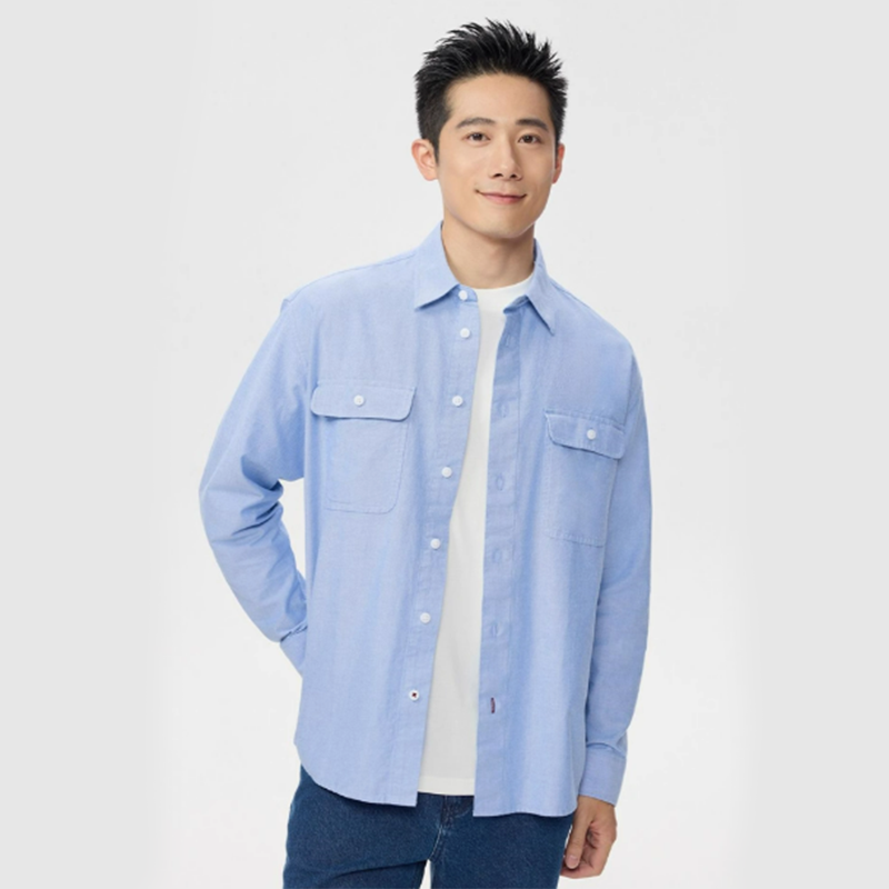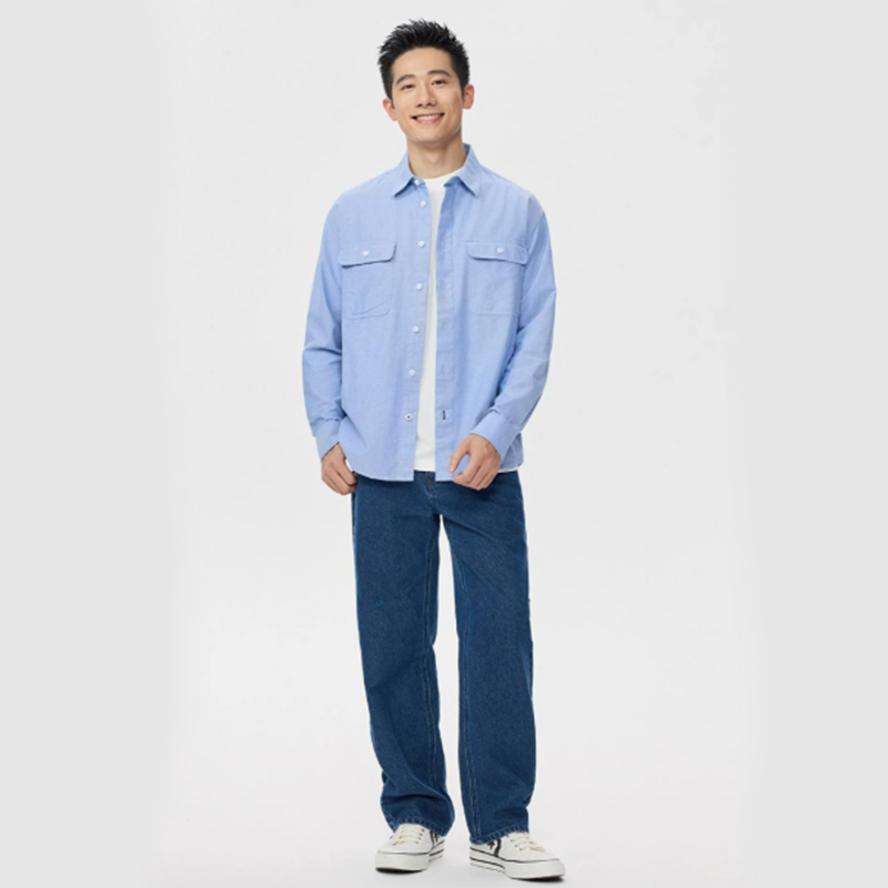 佐丹奴牛津纺衬衫男新款纯棉双口袋男士帅气通勤长袖衬衫01045032