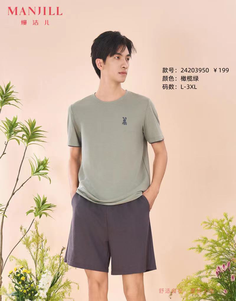 【商场同款】熳洁儿 男士家居服春夏牛津麻男短袖短裤套装简约高级24203950
