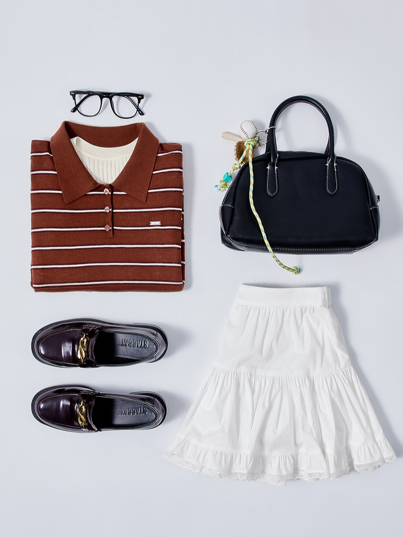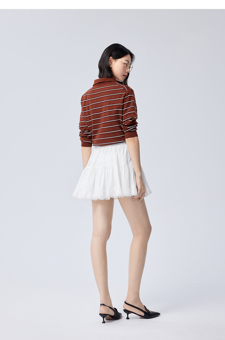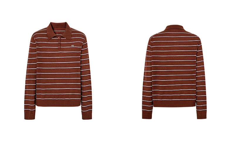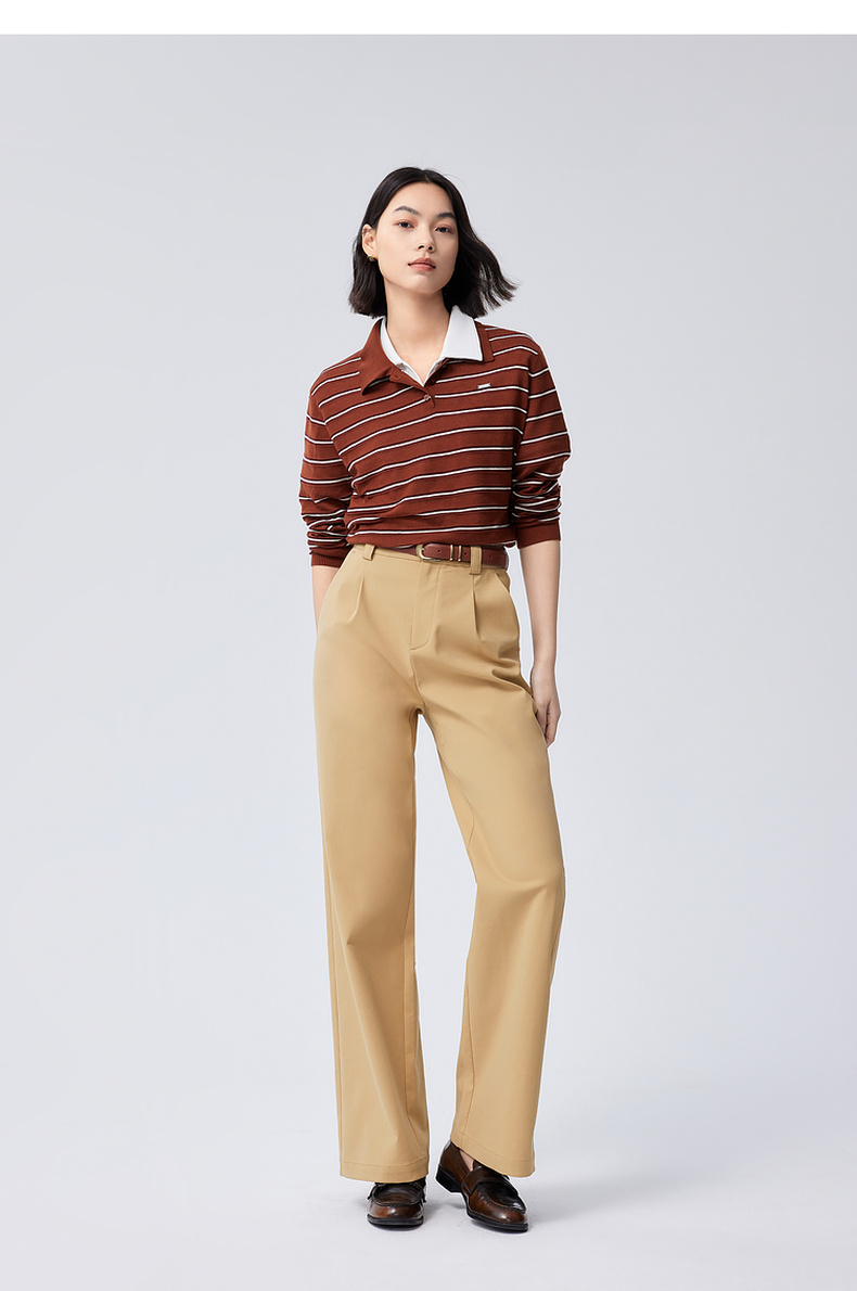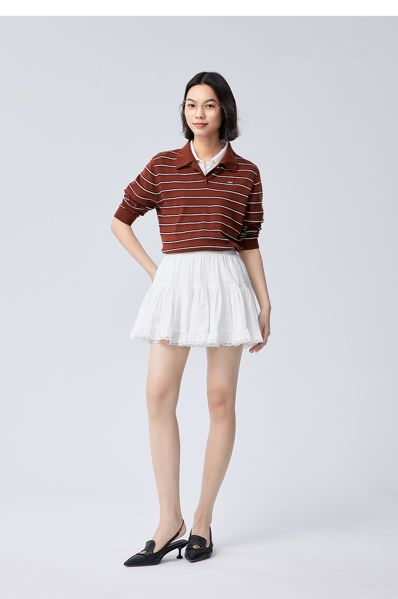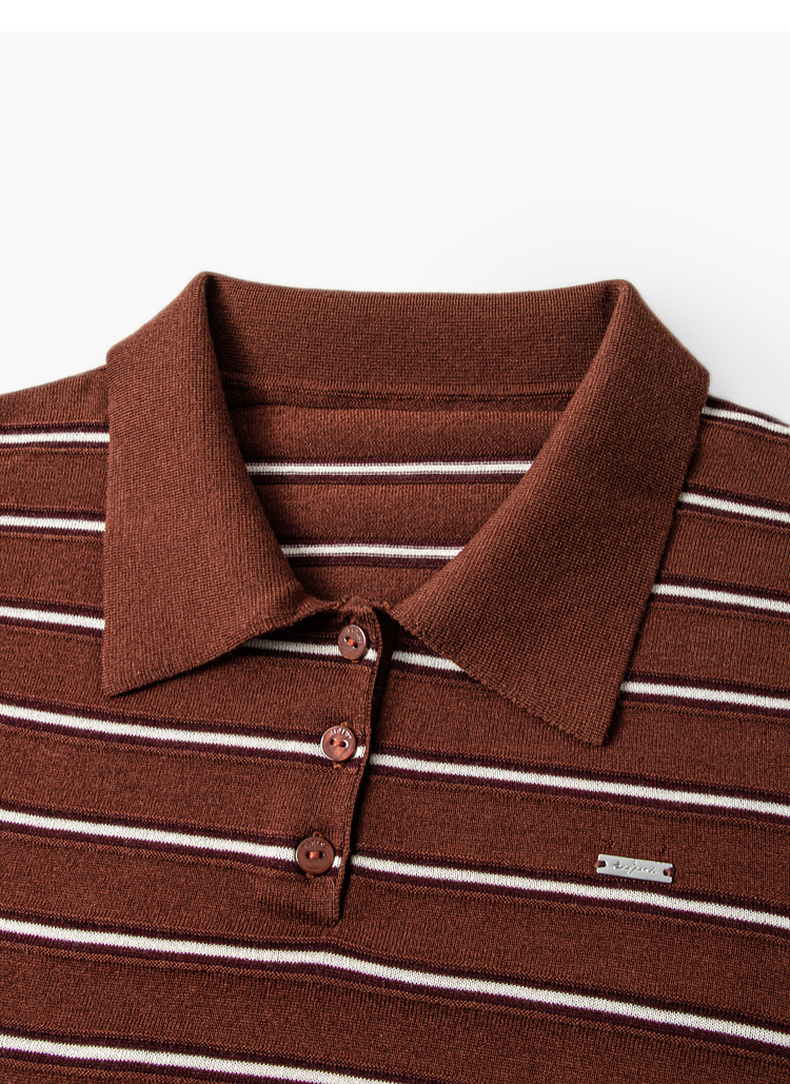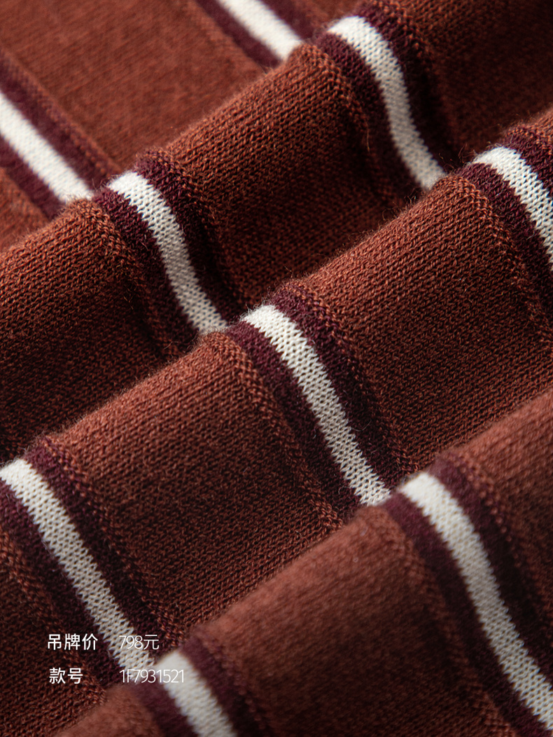 【严选】伊芙丽羊毛混纺POLO领条纹套头针织衫女2024秋装新款上衣1F7931521