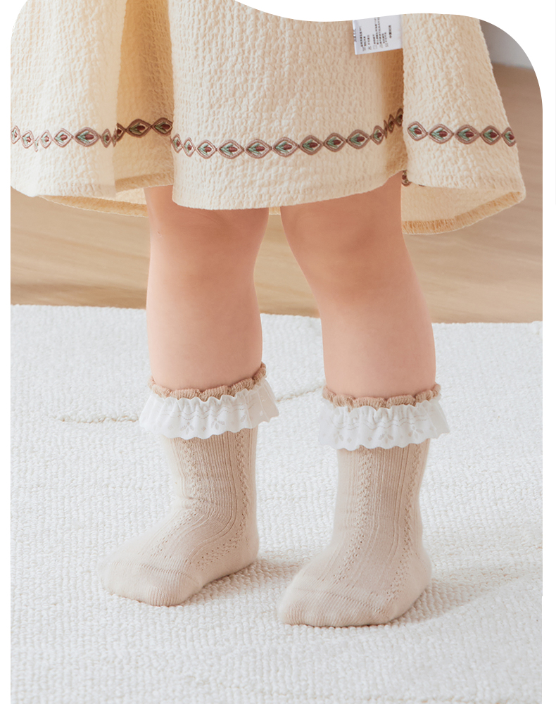 粒粒阳光儿童袜子秋款百搭宝宝袜蕾丝花边洛丽塔女童袜子