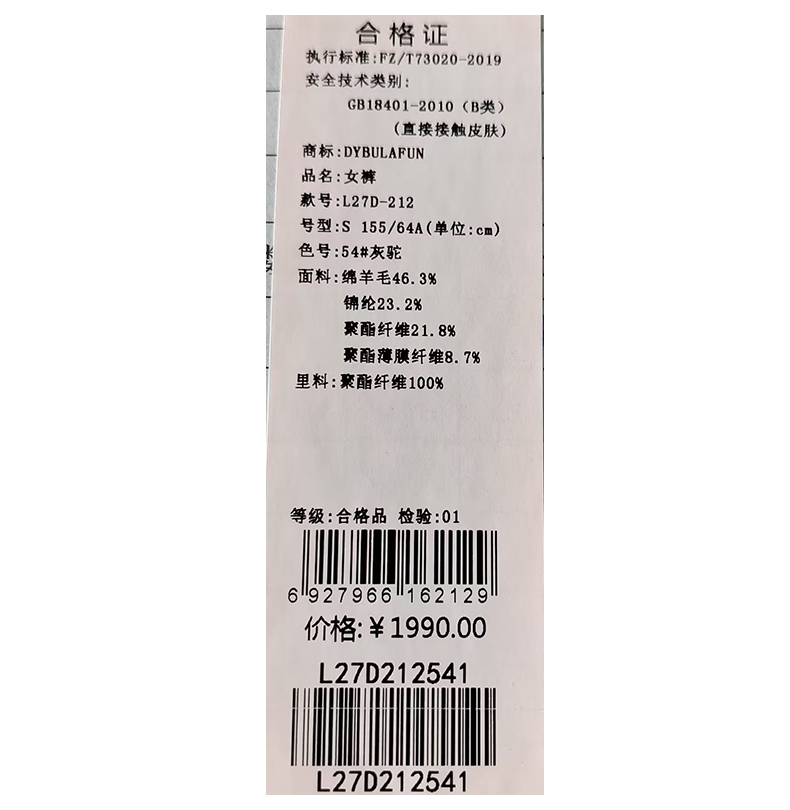 戴布拉芬裤子L27D212