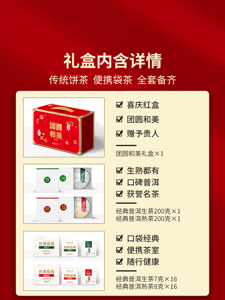 澜沧古茶2024年团圆和美007经典普洱茶生茶0081经典普洱茶熟茶组合礼盒装640g