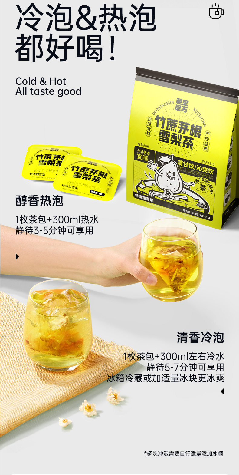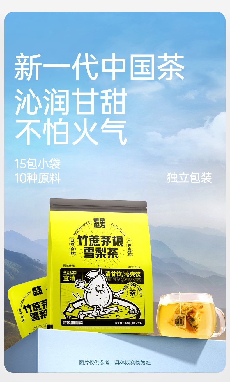 【2袋装】老金磨方竹蔗茅根雪梨茶甘蔗马蹄茶凉茶水果茶上火养生茶