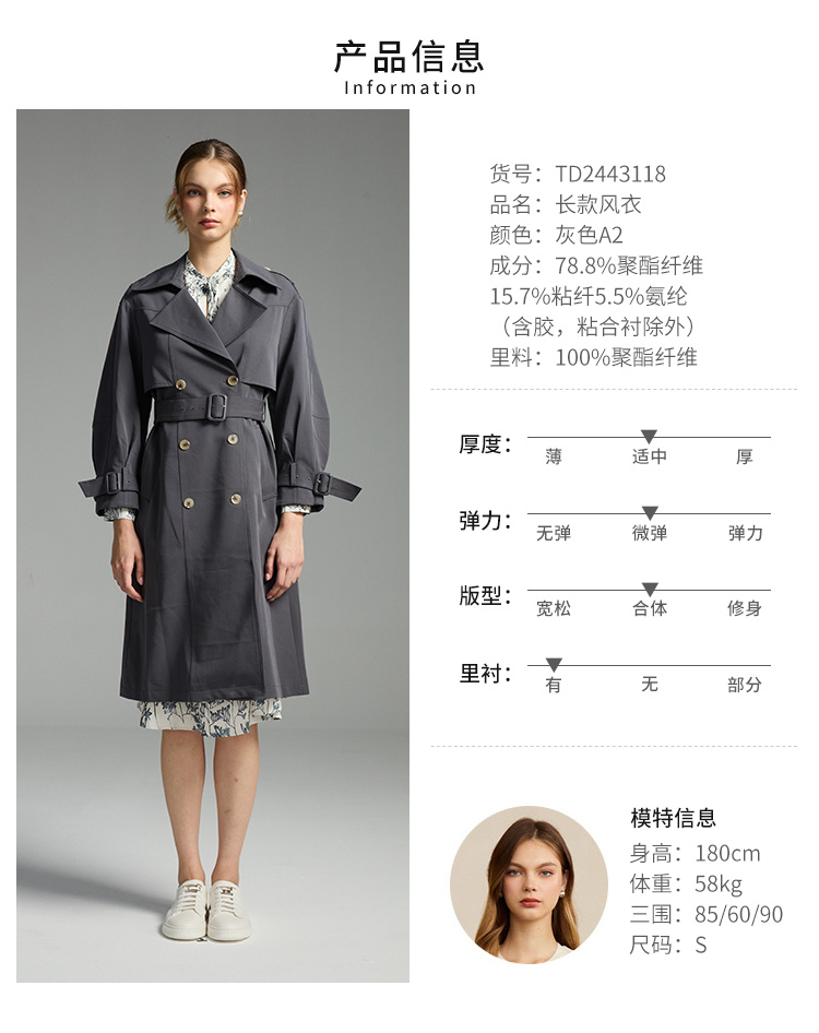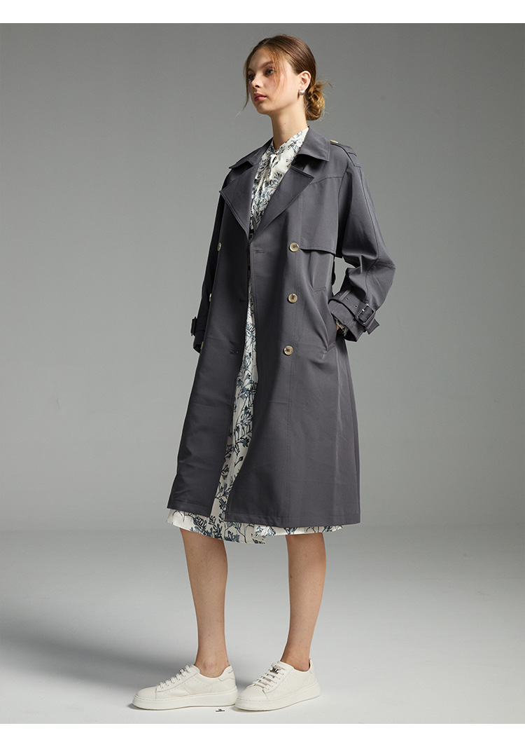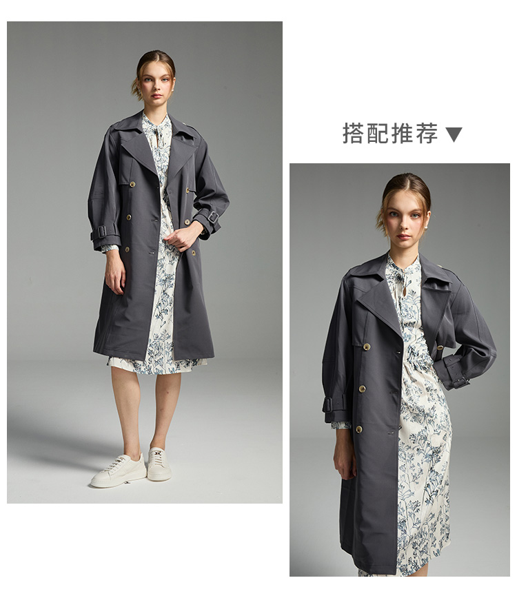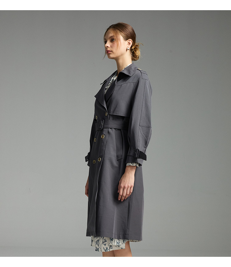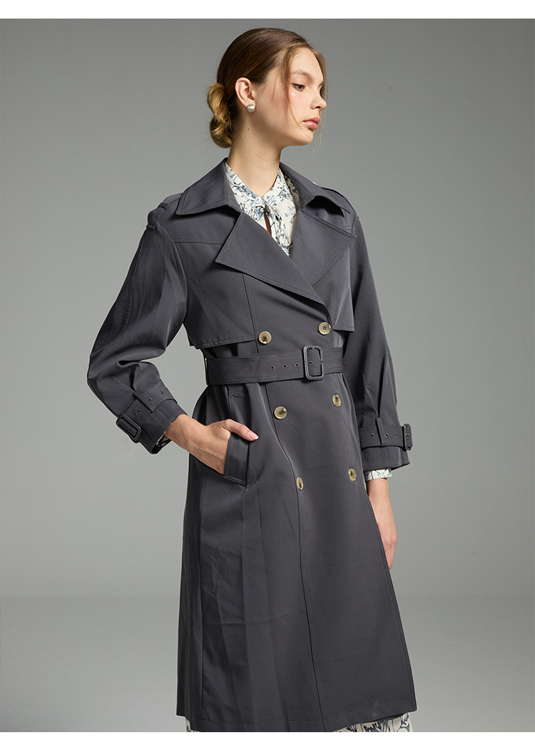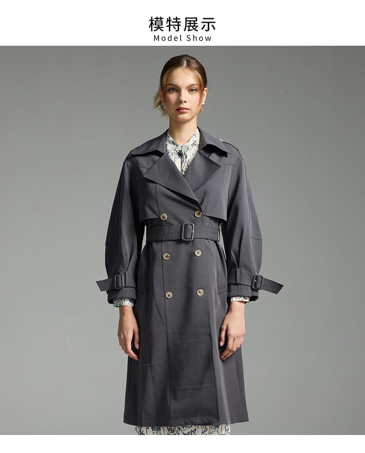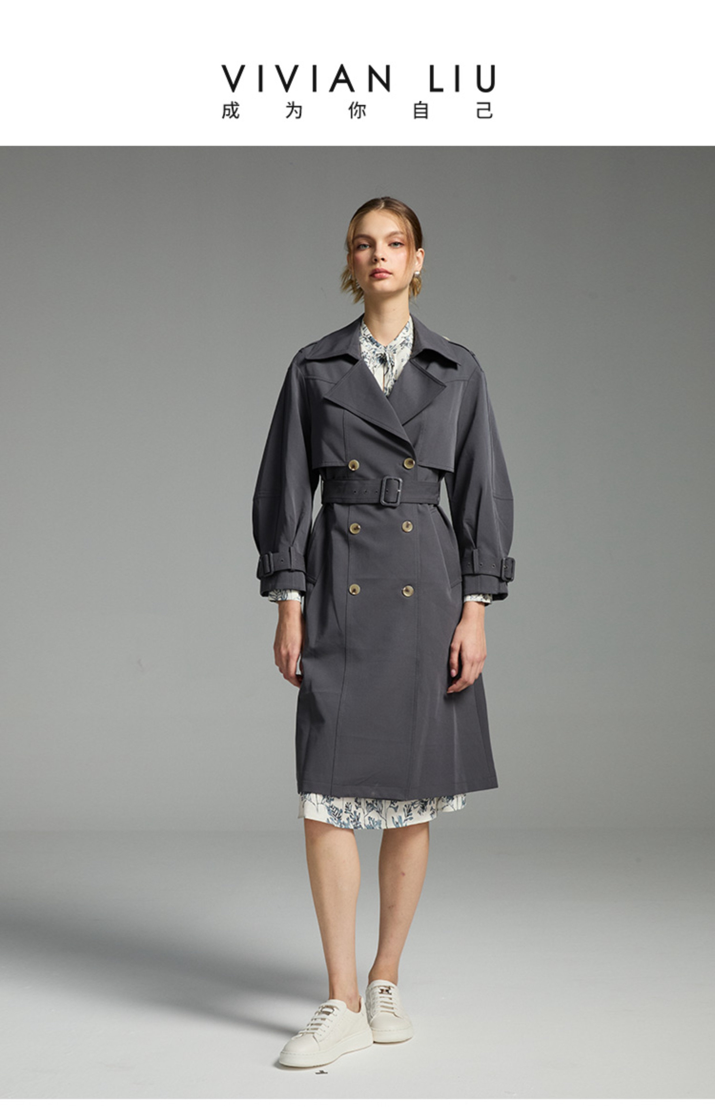 VIVIAN LIU薇薇安刘TD2443120初秋女装新款双排扣收腰长款风衣