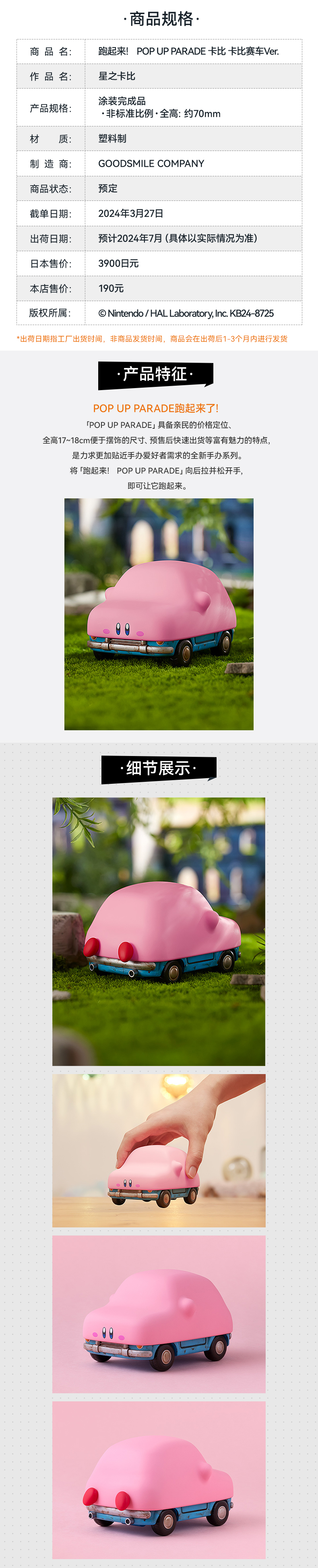 【GSC现货】跑起来! POP UP PARADE 卡比 卡比赛车Ver. 星之卡比