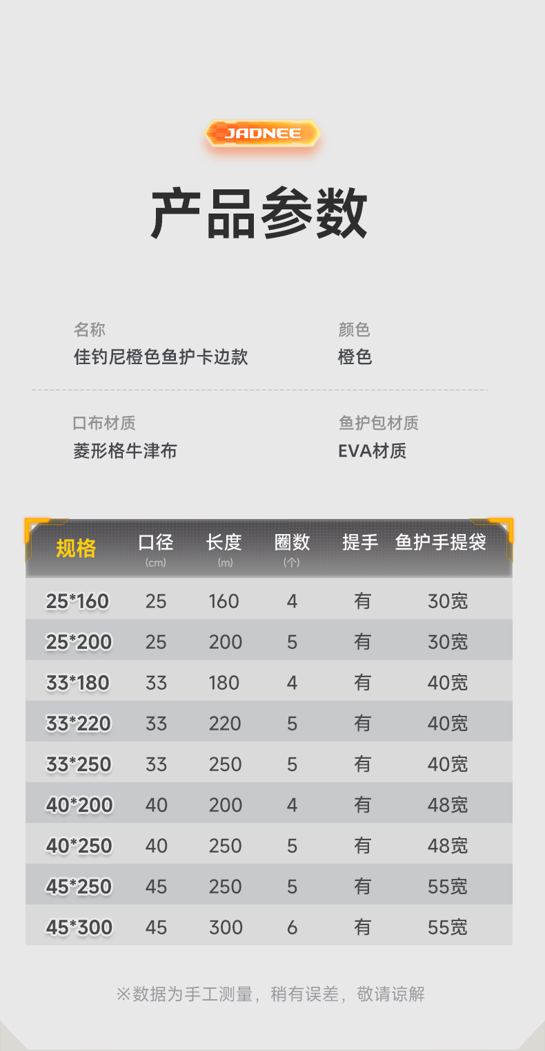 佳钓尼橙色卡边鱼护结实速干拒绝炸护款式拒绝撕裂