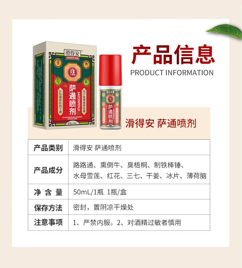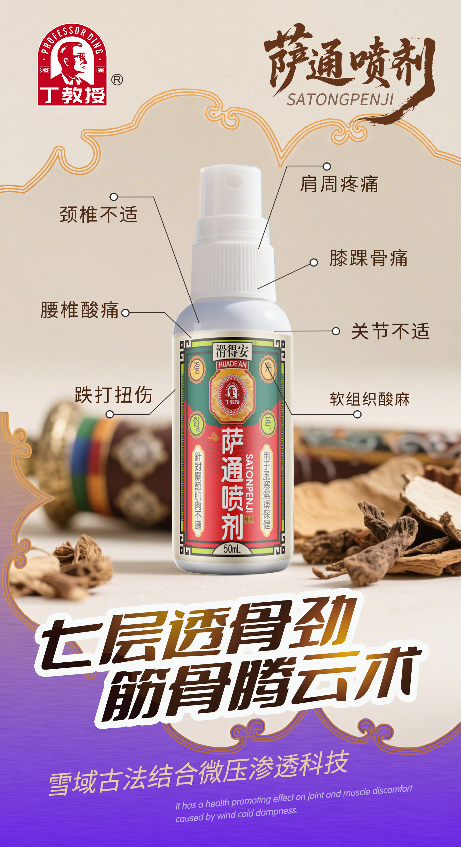 【关节喷剂型】丁教授滑得安萨通喷剂 颈肩腰膝关节喷剂 50ml/盒