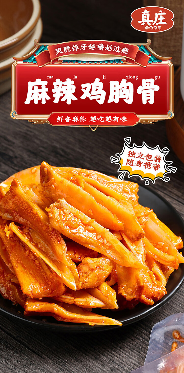 真莊真庄广东客家特产香辣三角骨鸡脆骨鸡肉零食熟食 【麻辣/盐焗鸡胸骨】 200g