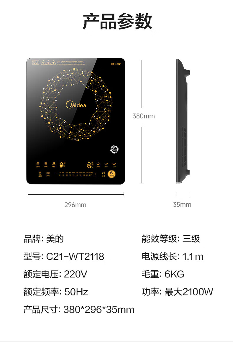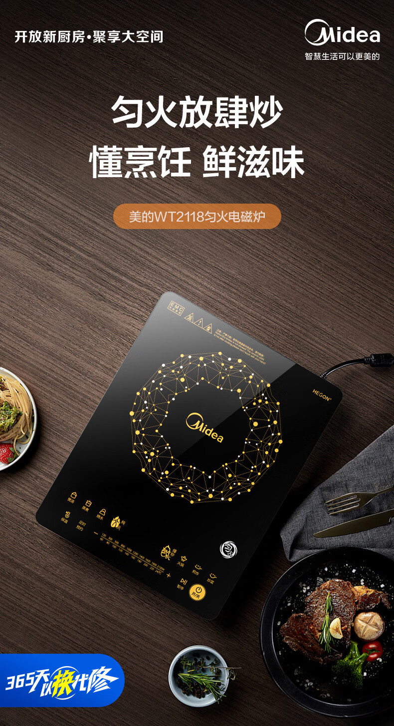 美的 电磁炉 火锅炉匀火 智能定时 十档火力 C21-WT2118(原价)