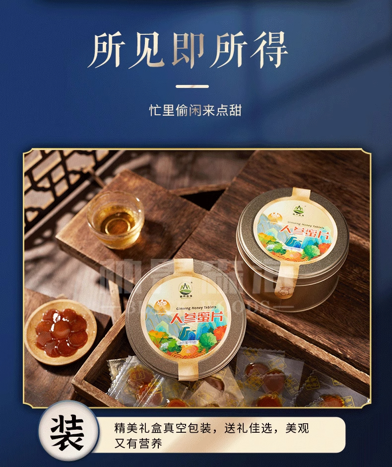 【可以嚼着吃的人参】林界森海·人参蜜片 精选4~5年生长白山人参 搭配深山椴树蜜 温润甜糯 滋补营养 产地直发 正品保证 密封包装 干净卫生 50g/罐