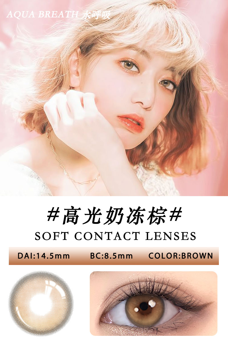 (新4)水呼吸14.5大直径灰棕蓝咖美瞳组合年抛美瞳彩色隐形眼镜