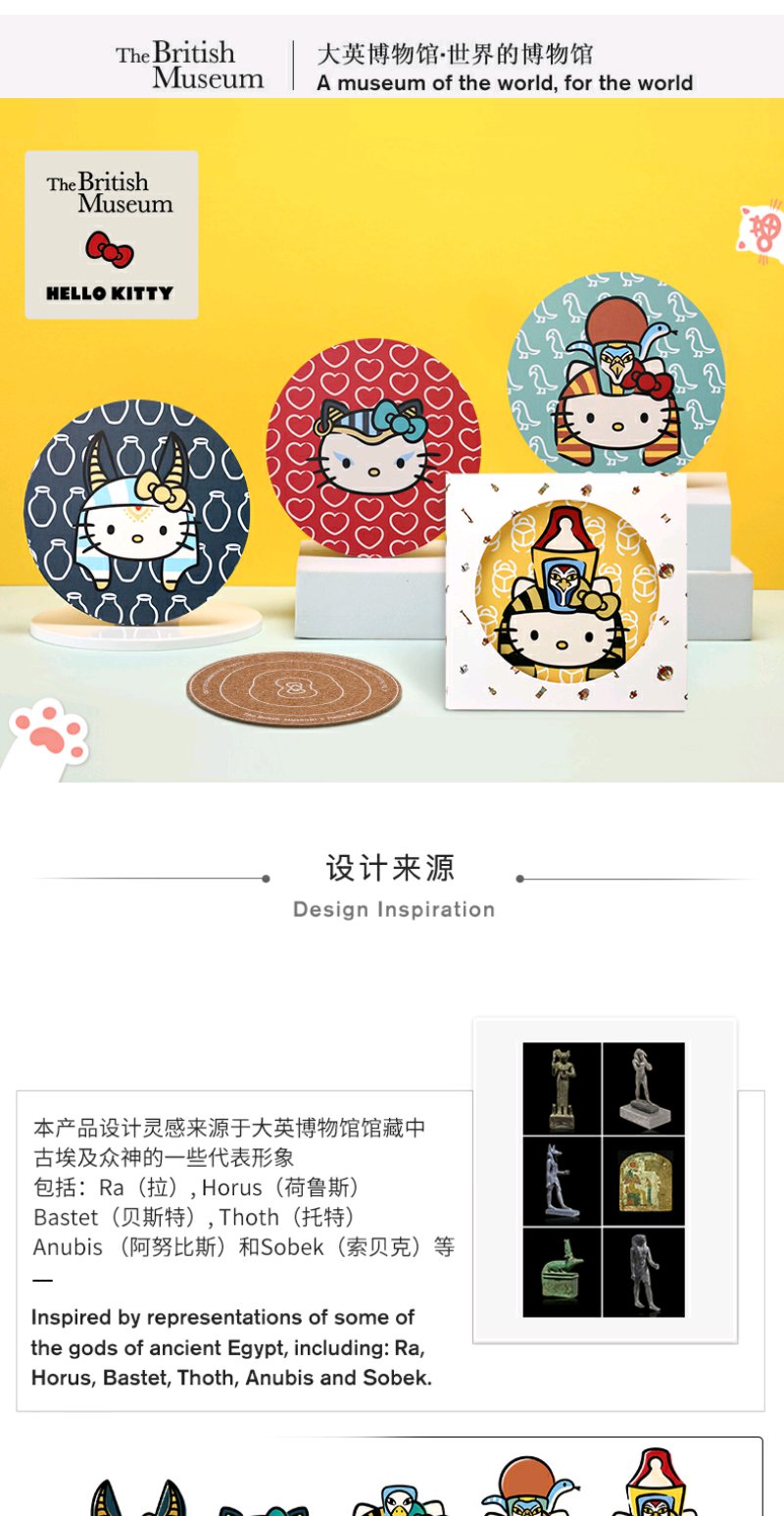 创意卡通杯垫 大英博物馆官方 X HELLO KITTY联名款杯垫软木茶杯垫隔热2件套