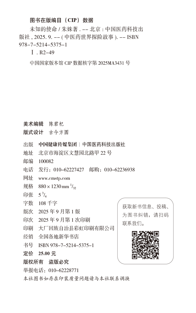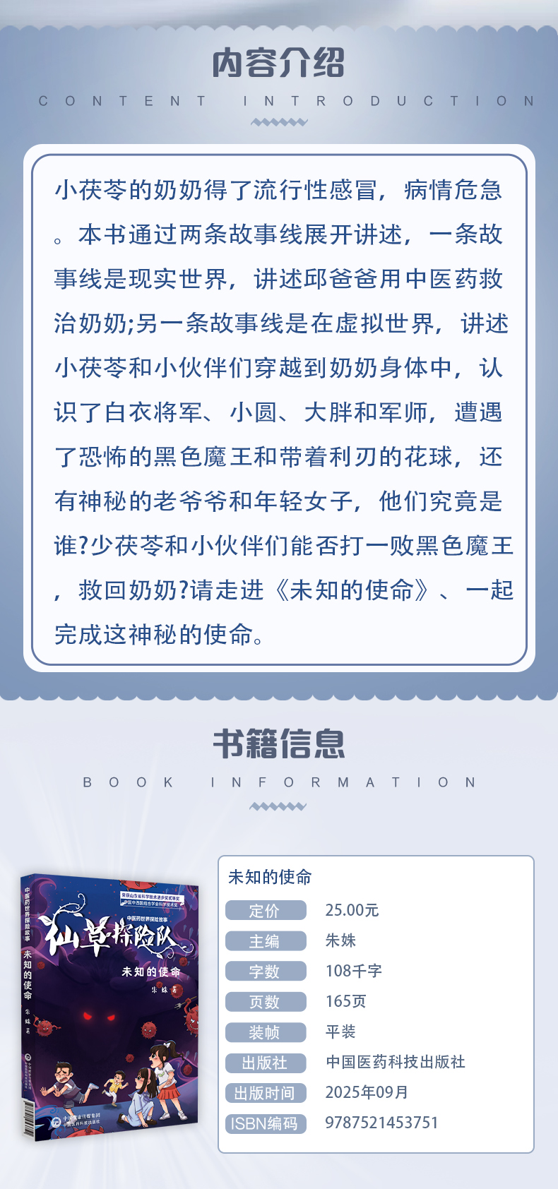 未知的使命(中医药世界探险故事)朱姝 主编 儿童文学 科普百科 书籍 讲述邱爸爸用中医药救治奶奶等故事 中国医药科技出版社