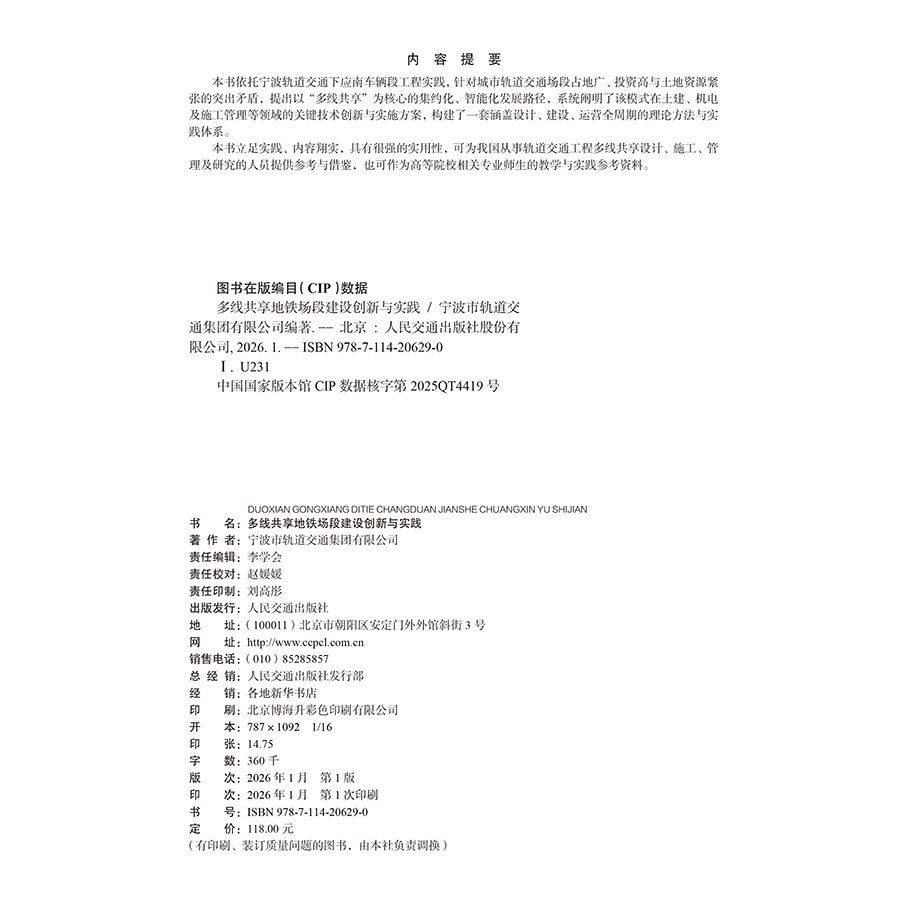 书名:多线共享地铁场段建设创新与实践