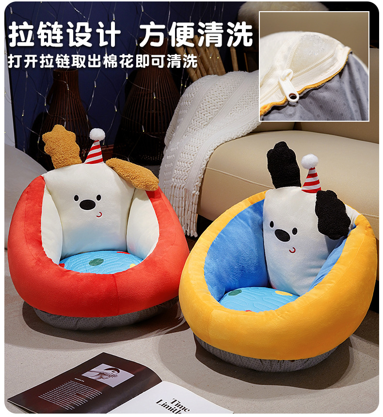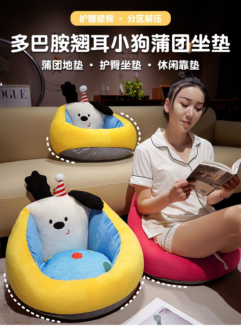 【多巴胺翘耳小狗蒲团坐垫】冰丝懒人小沙发蒲团坐垫家用地上榻榻米坐墩靠背一体加厚屁垫夏季。ry