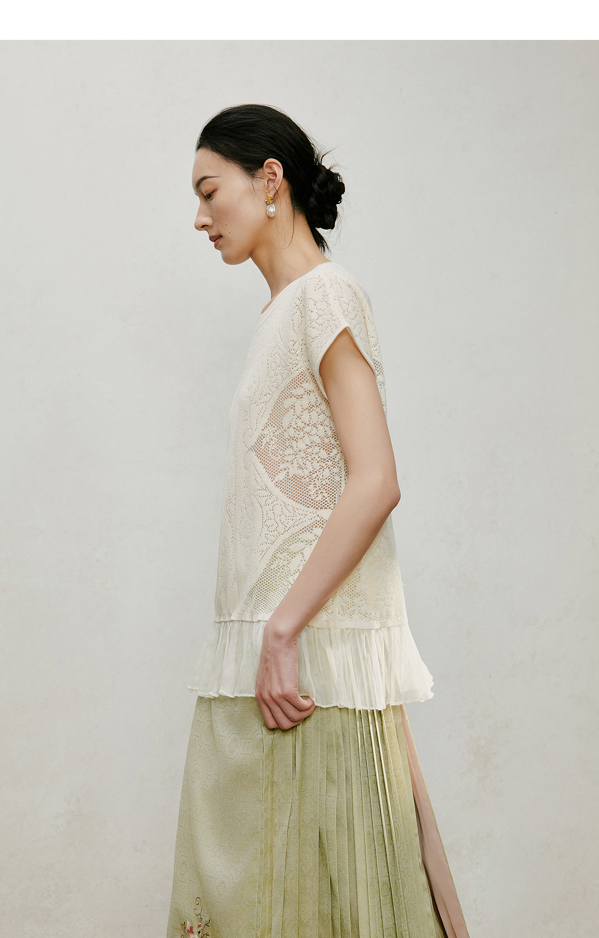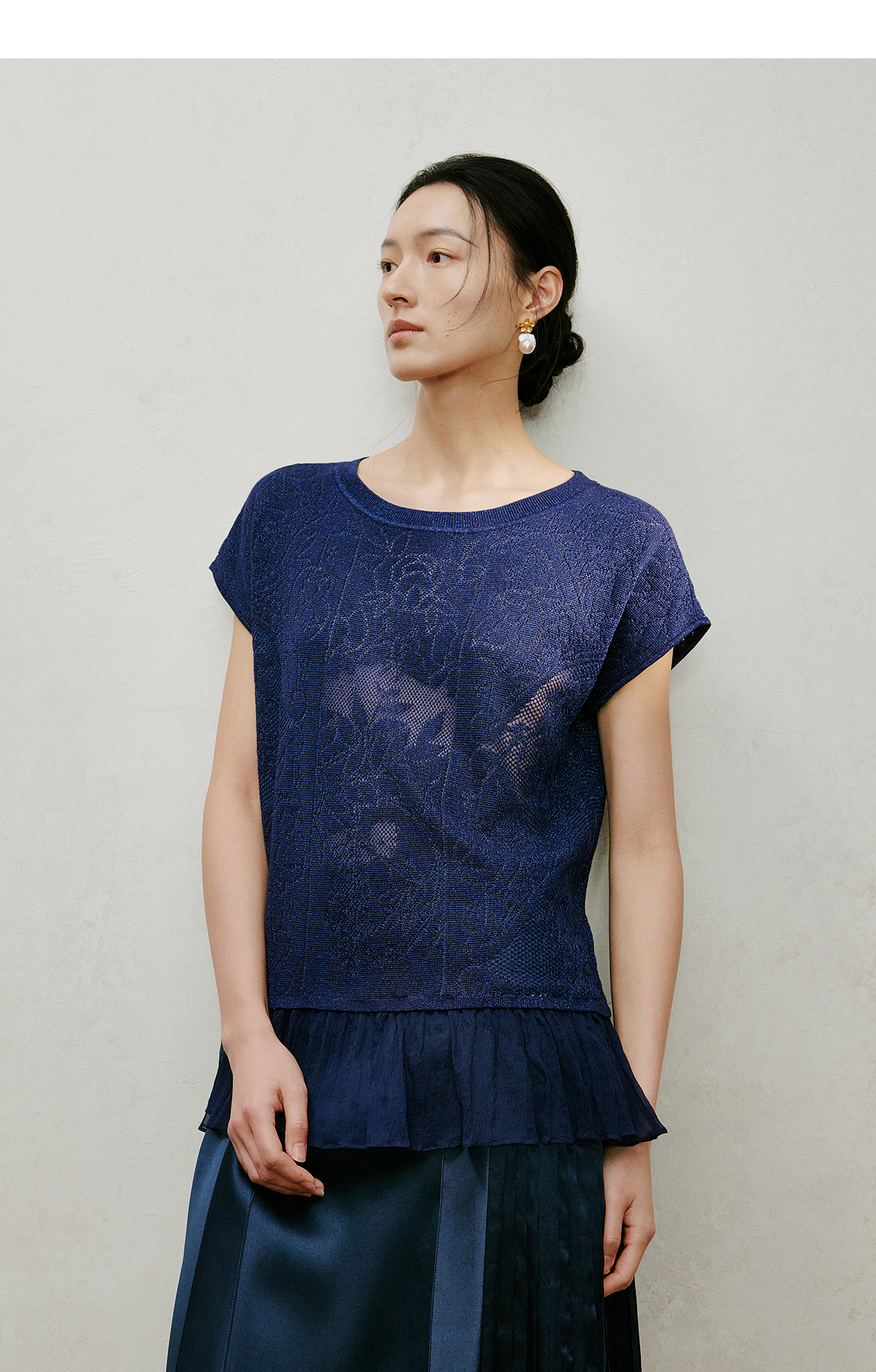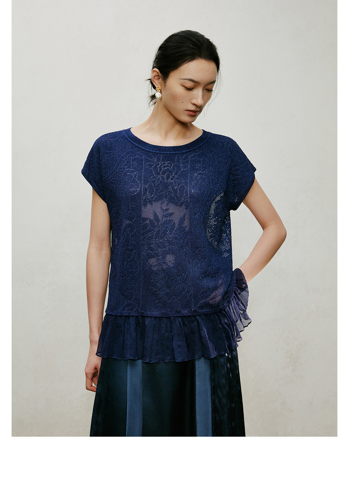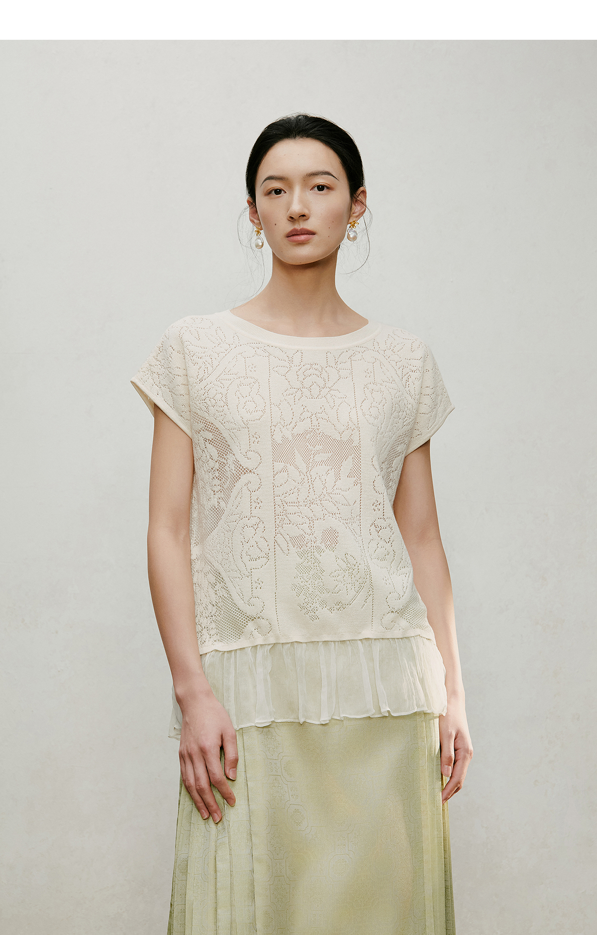 【林栖设计小店】一帘幽梦|提花桑蚕丝荷叶边2026夏新款毛织上衣1962081