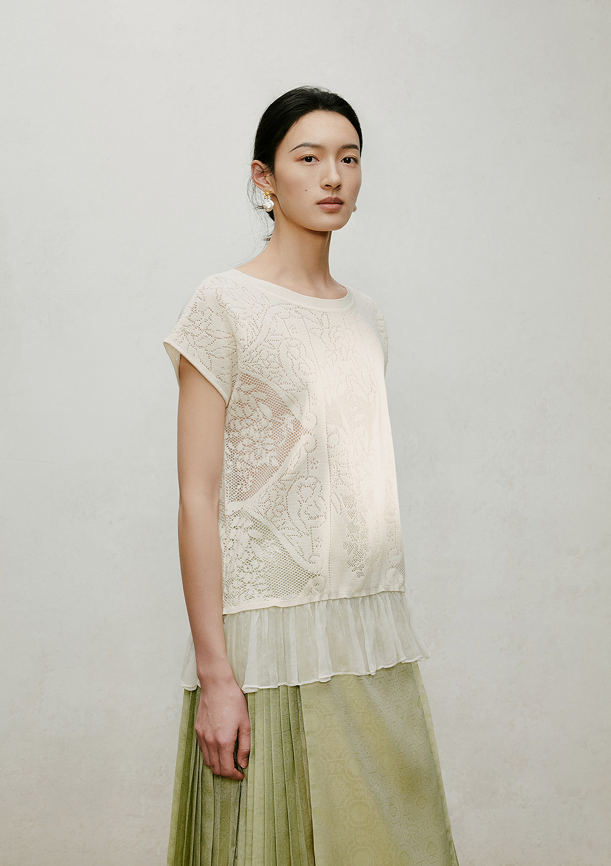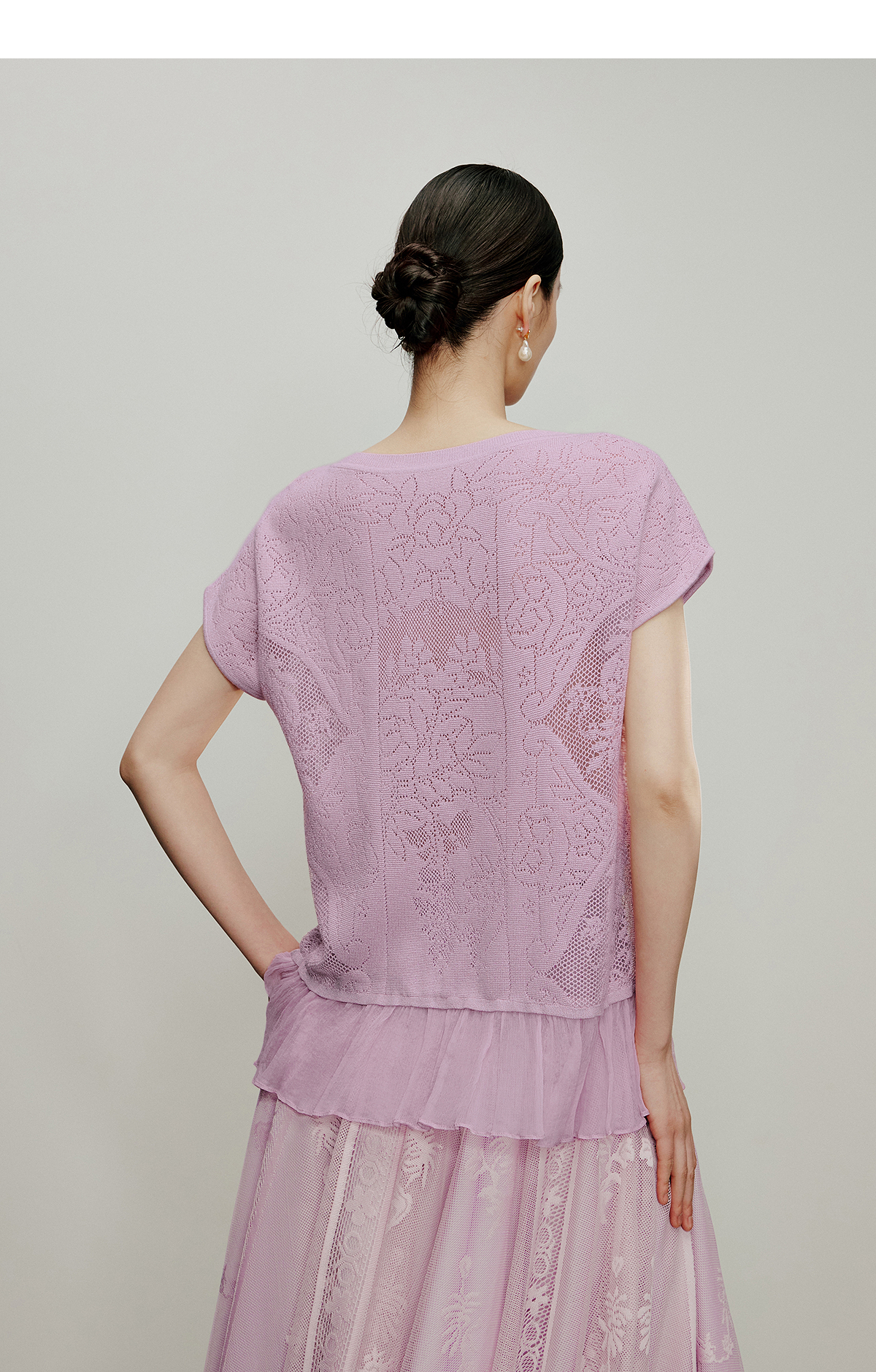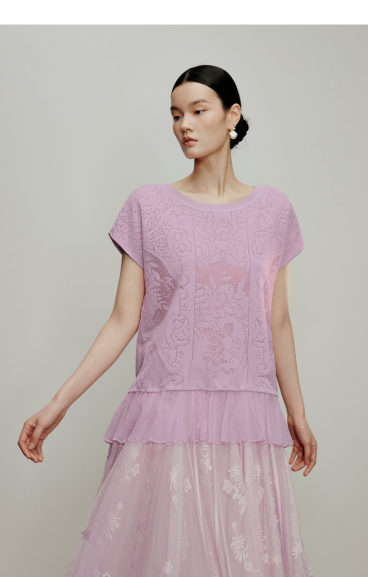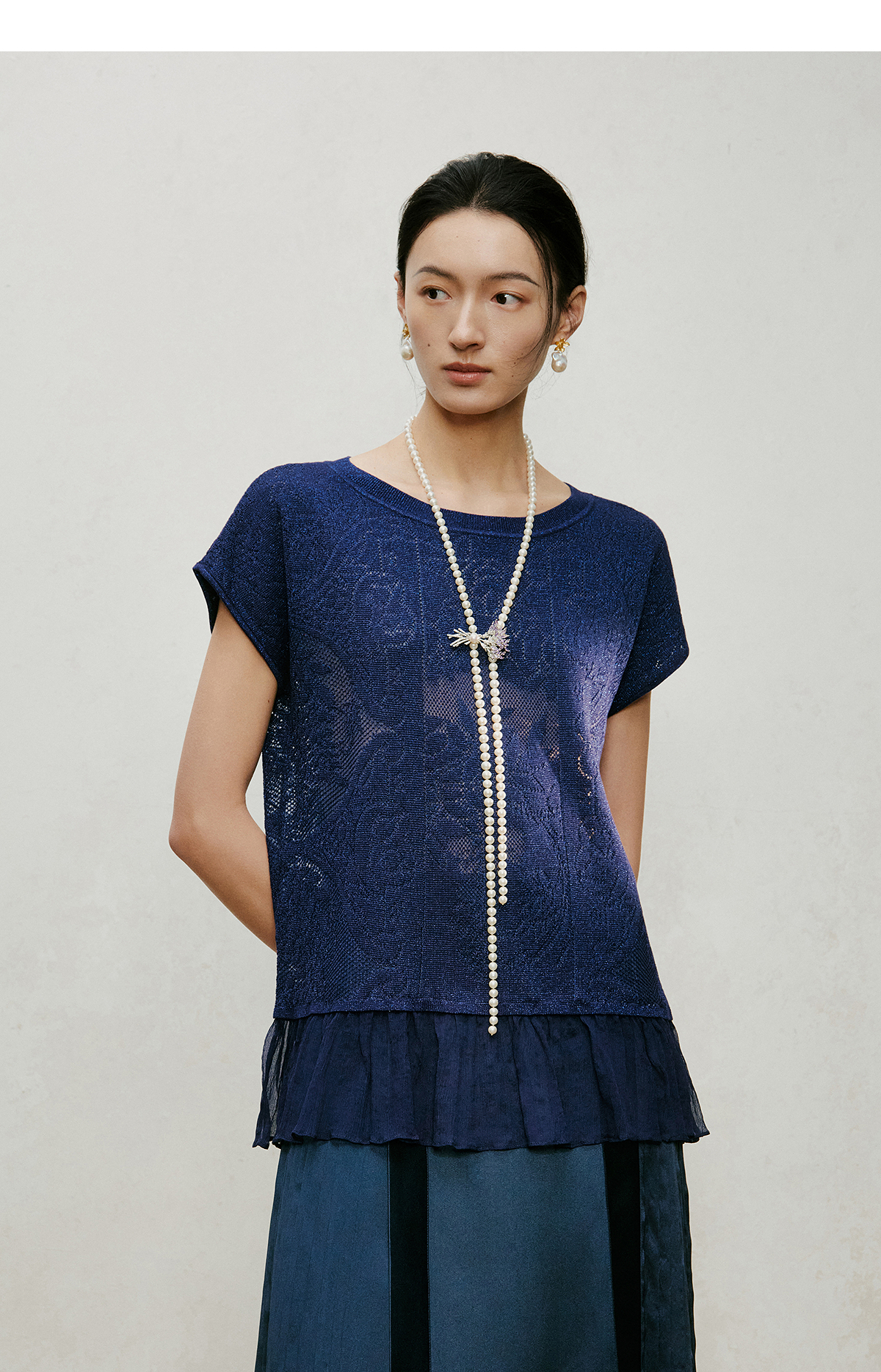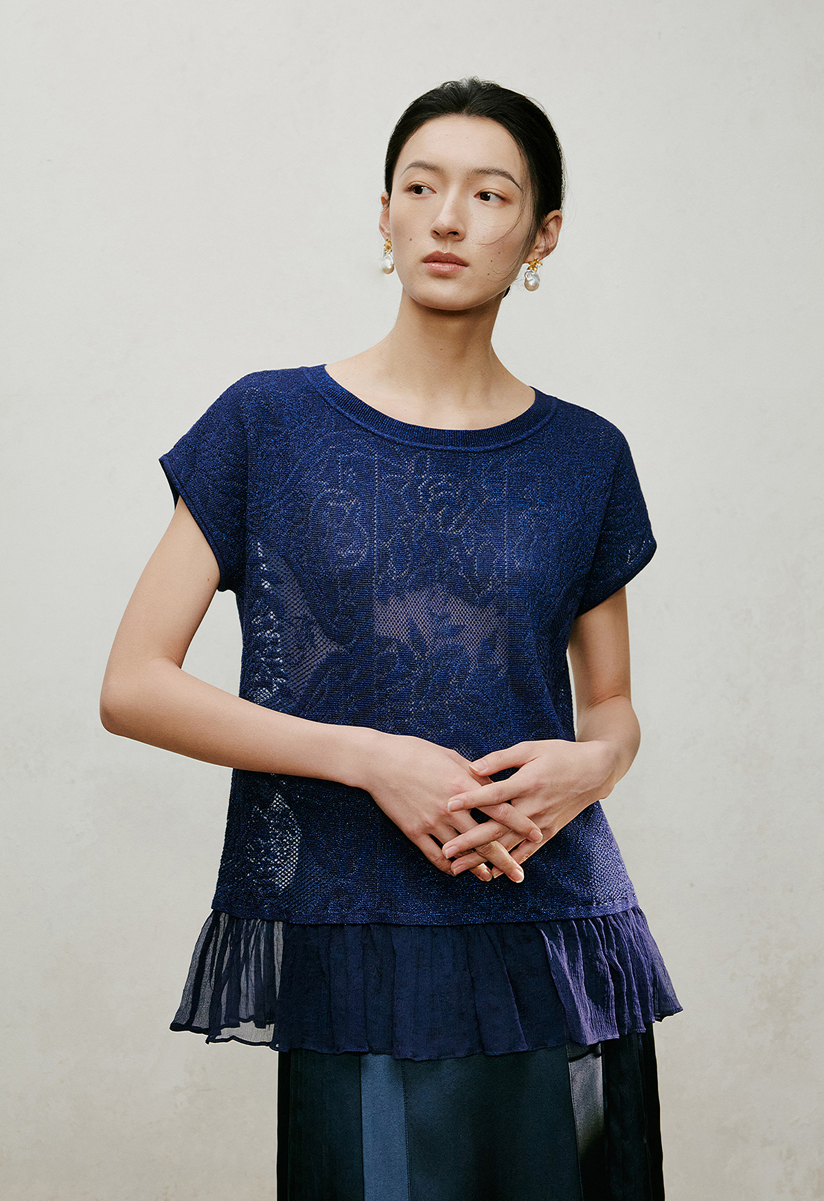 【林栖设计小店】一帘幽梦|提花桑蚕丝荷叶边2026夏新款毛织上衣1962081