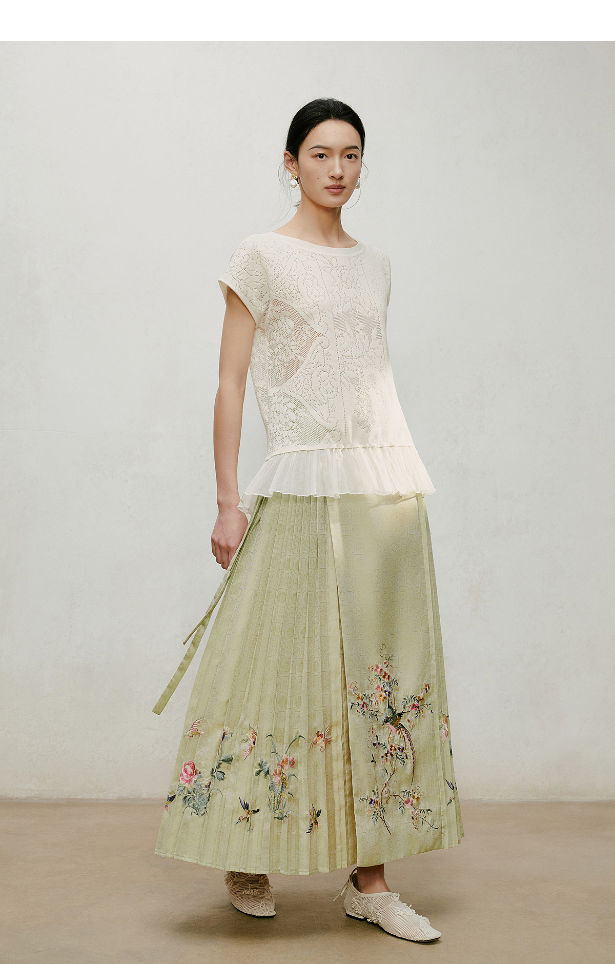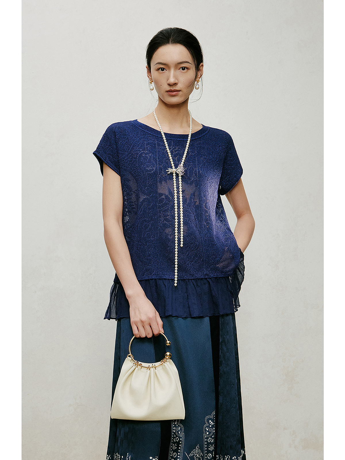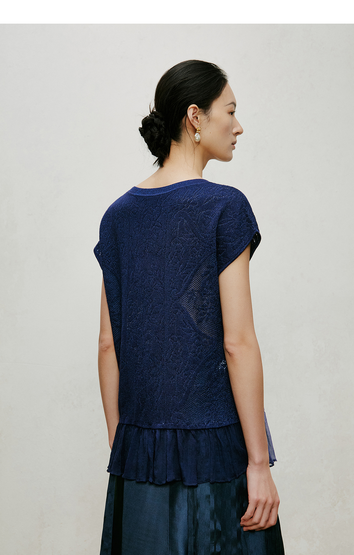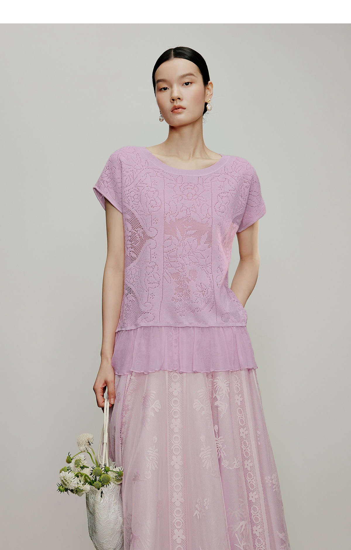 【林栖设计小店】一帘幽梦|提花桑蚕丝荷叶边2026夏新款毛织上衣1962081