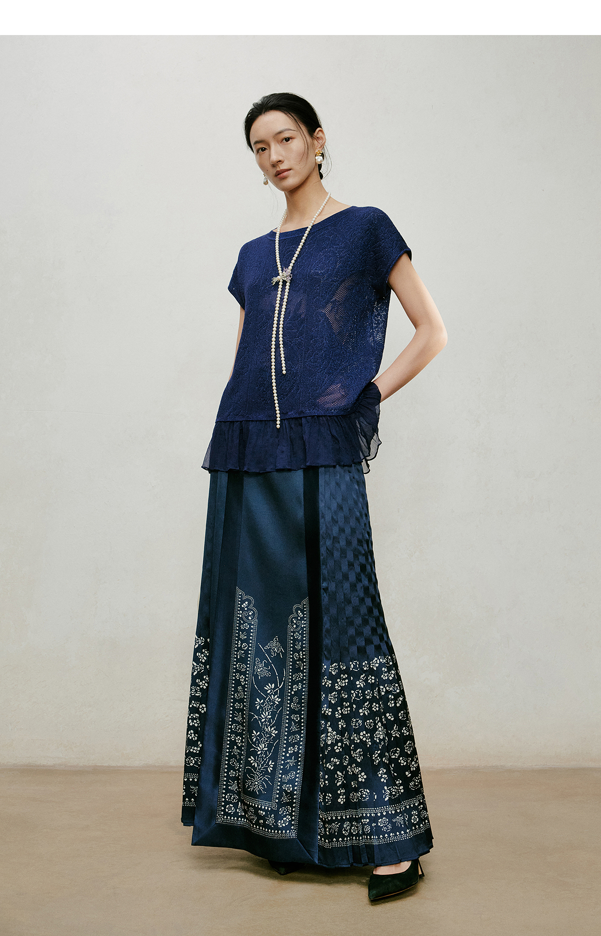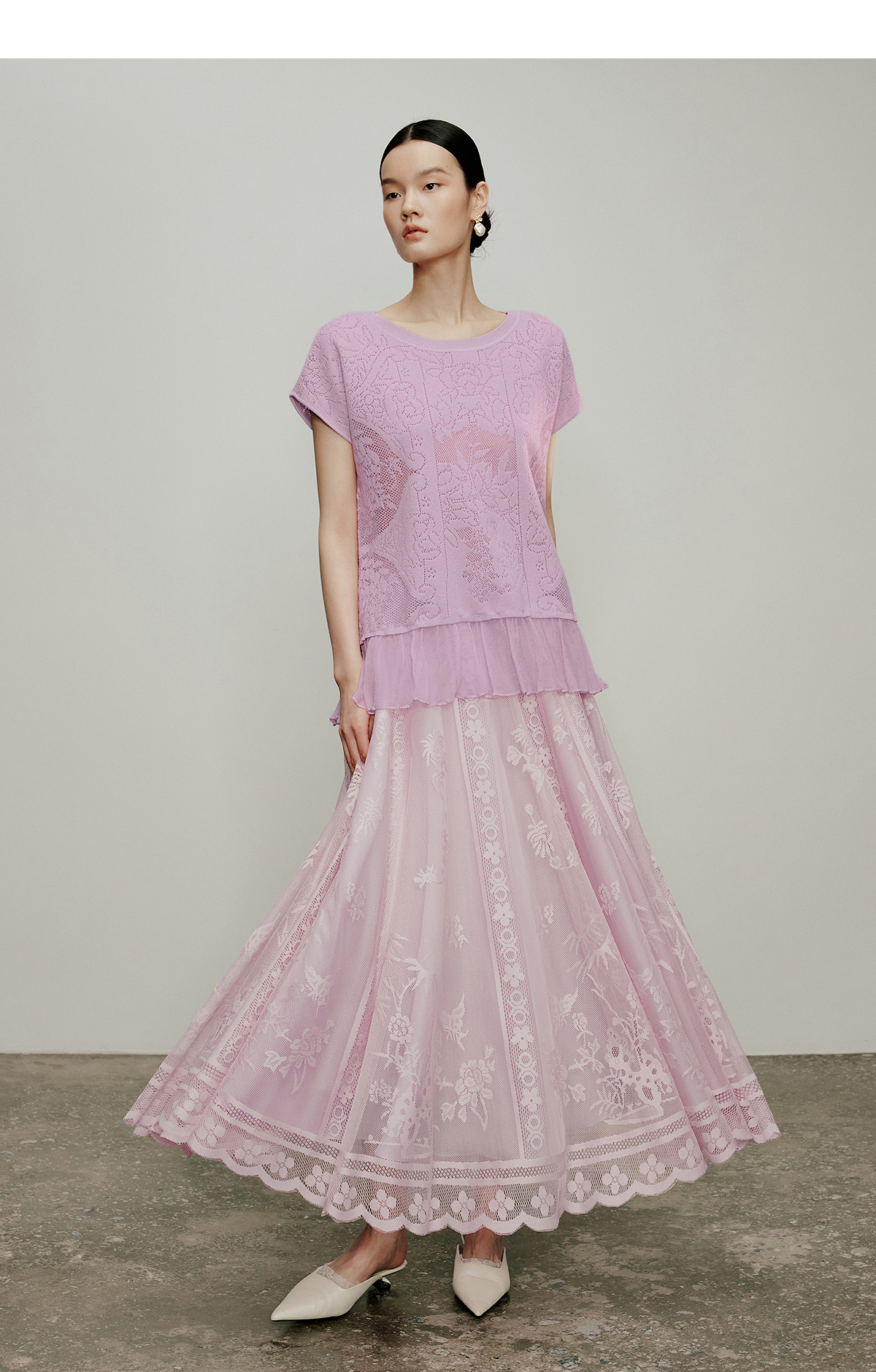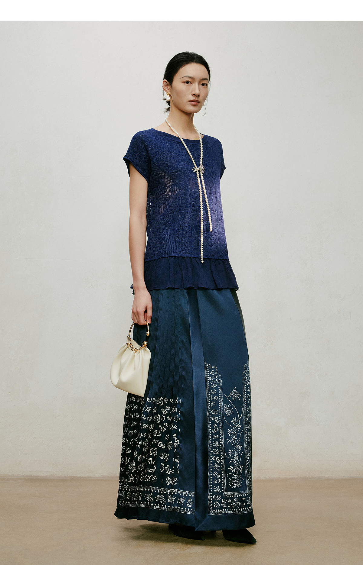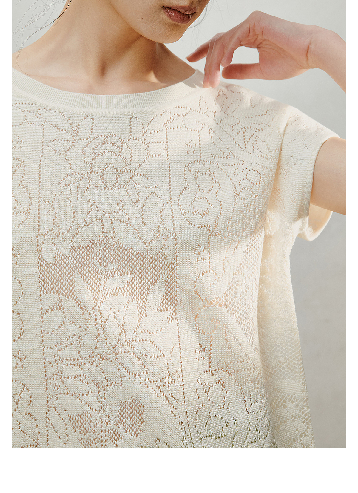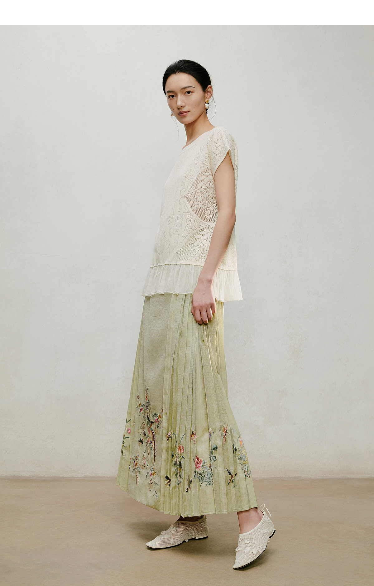 【林栖设计小店】一帘幽梦|提花桑蚕丝荷叶边2026夏新款毛织上衣1962081