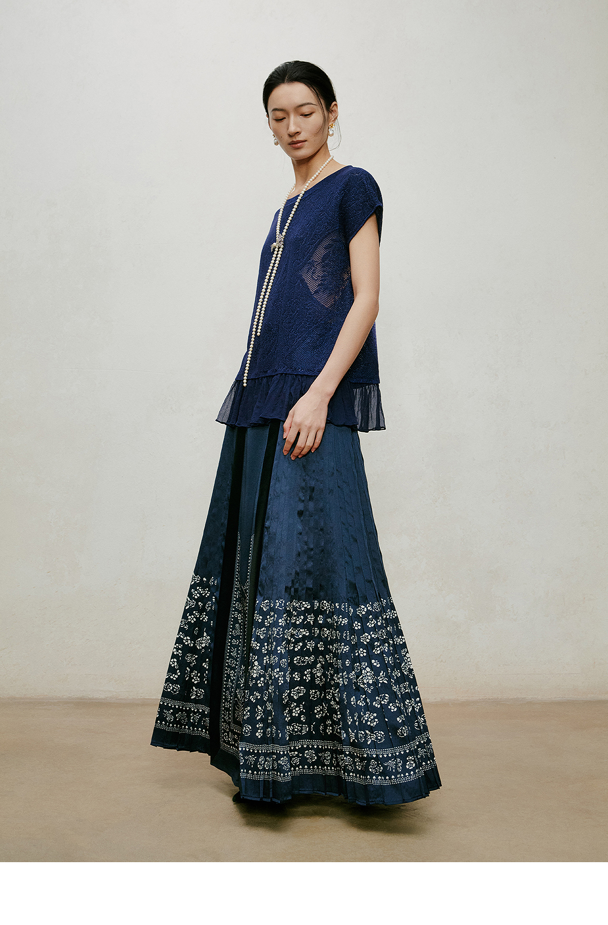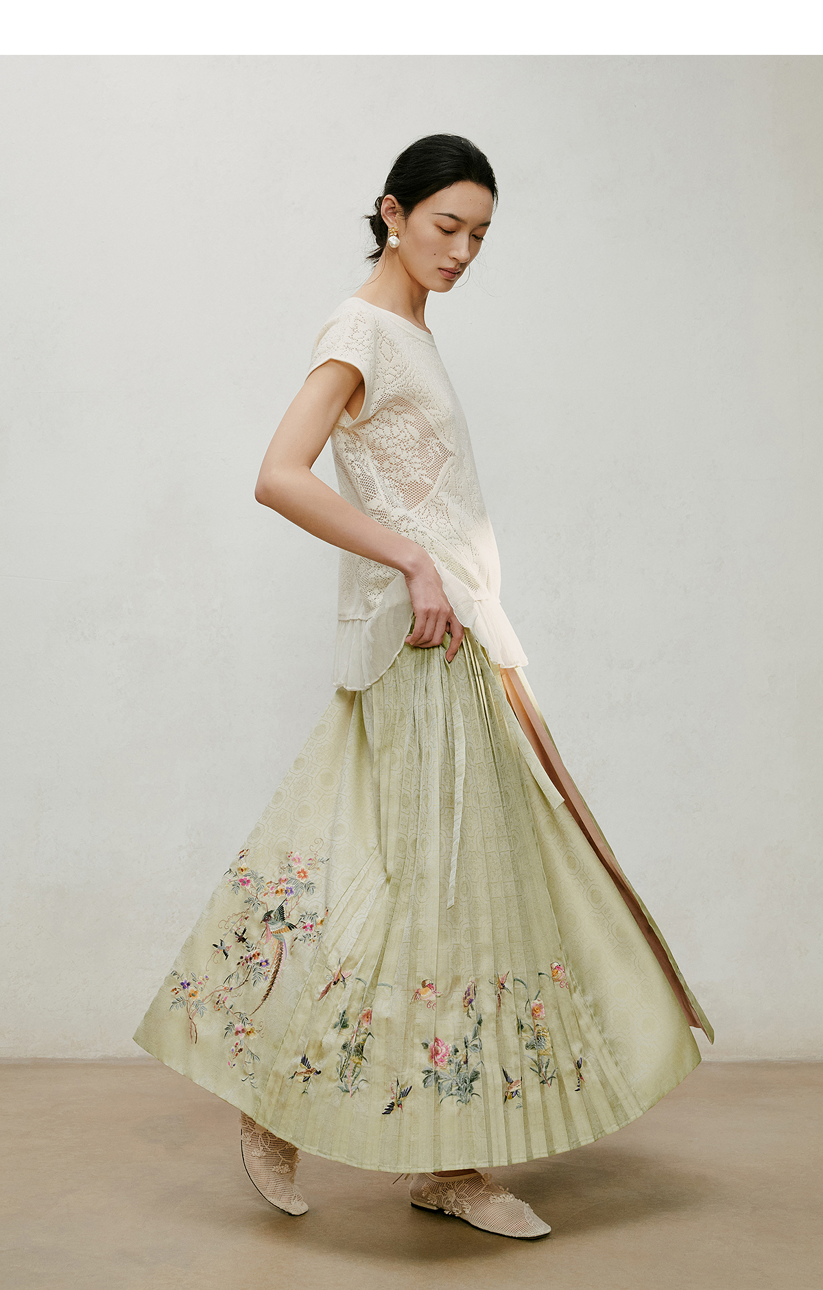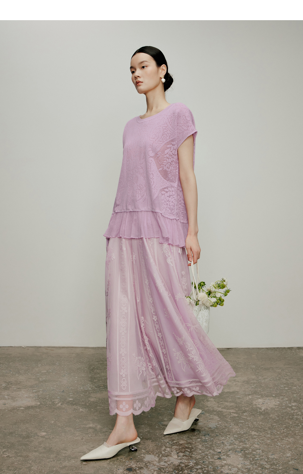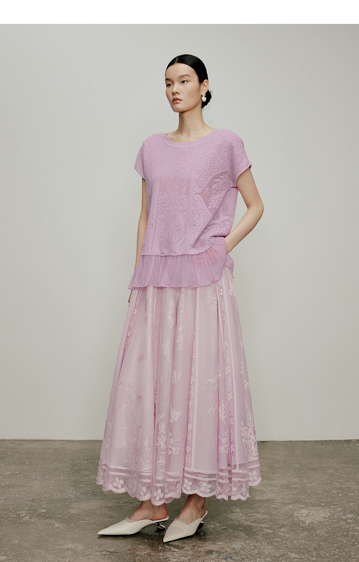【林栖设计小店】一帘幽梦|提花桑蚕丝荷叶边2026夏新款毛织上衣1962081