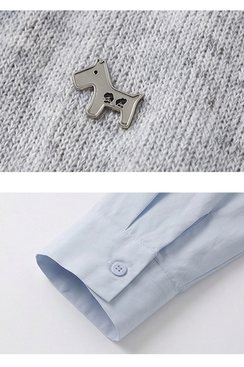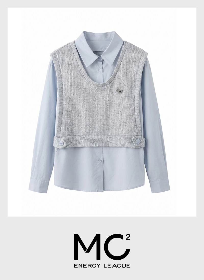 女装翻领配花纱针织拼接衬衣-2673C6212010
