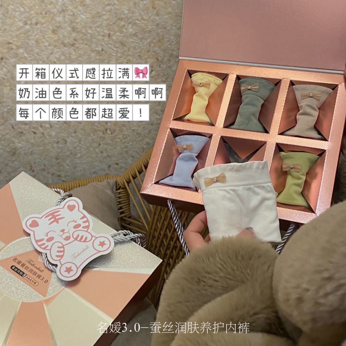 【6条礼盒装】 名媛蚕丝润肤裤3.0礼盒装 六条装中腰提臀无痕内裤 3D印花设计 亲肤透气 女士三角裤
