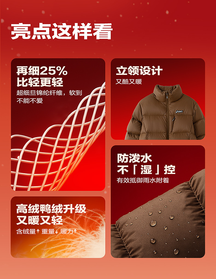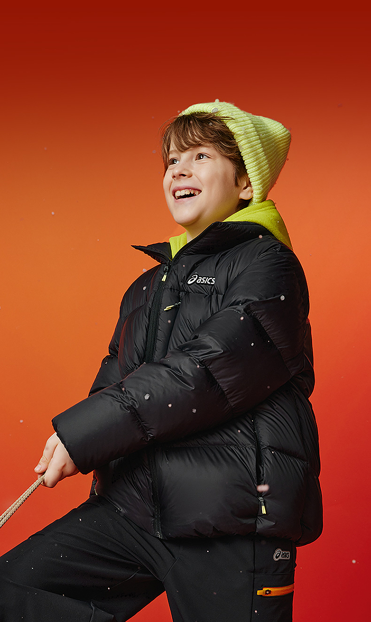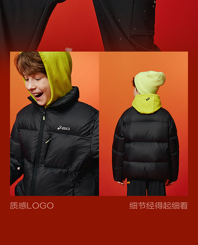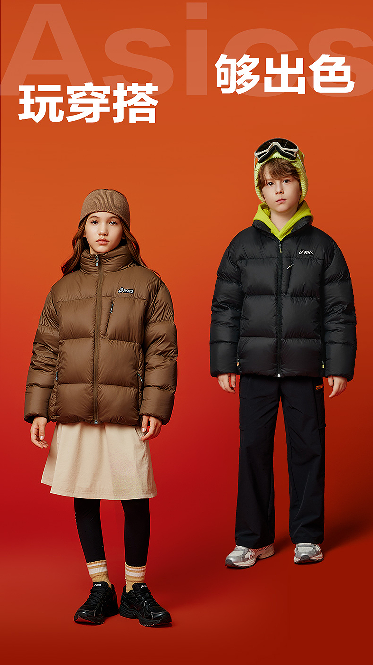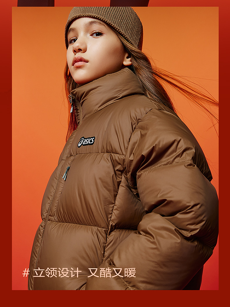 ASICS/亚瑟士童装25年冬季男女童短款泡芙面包服轻量蓬松舒适防水