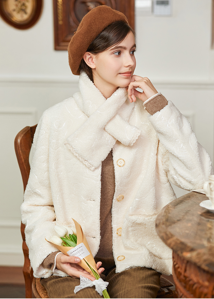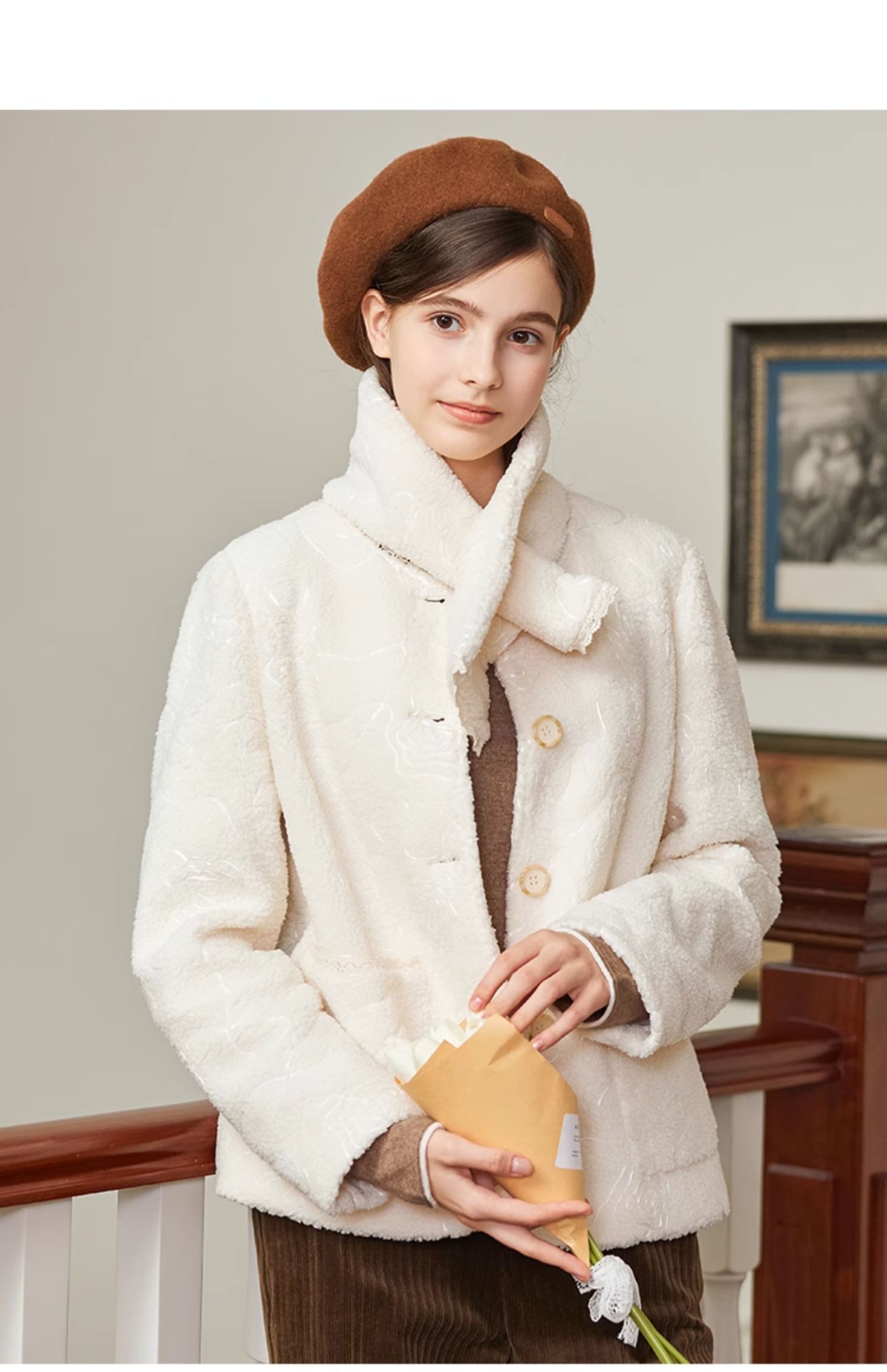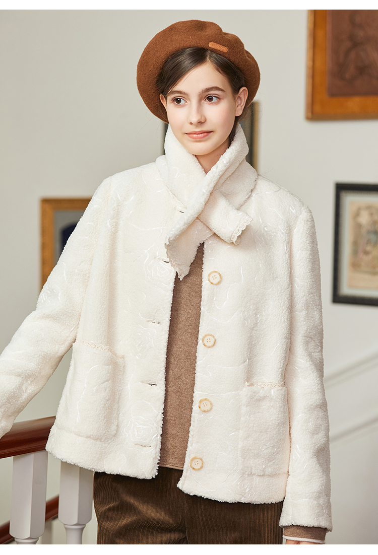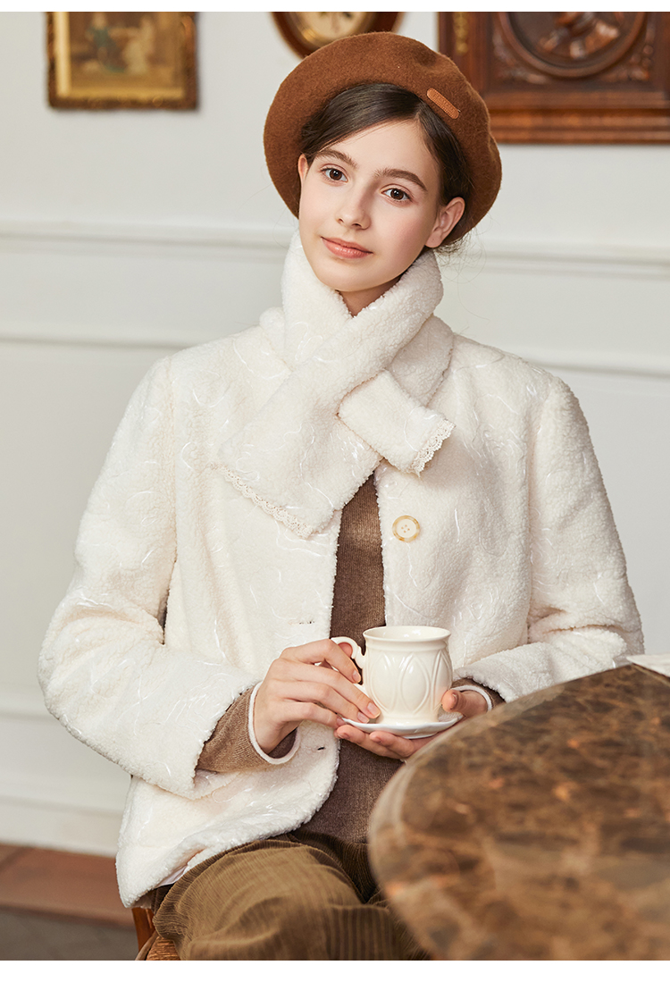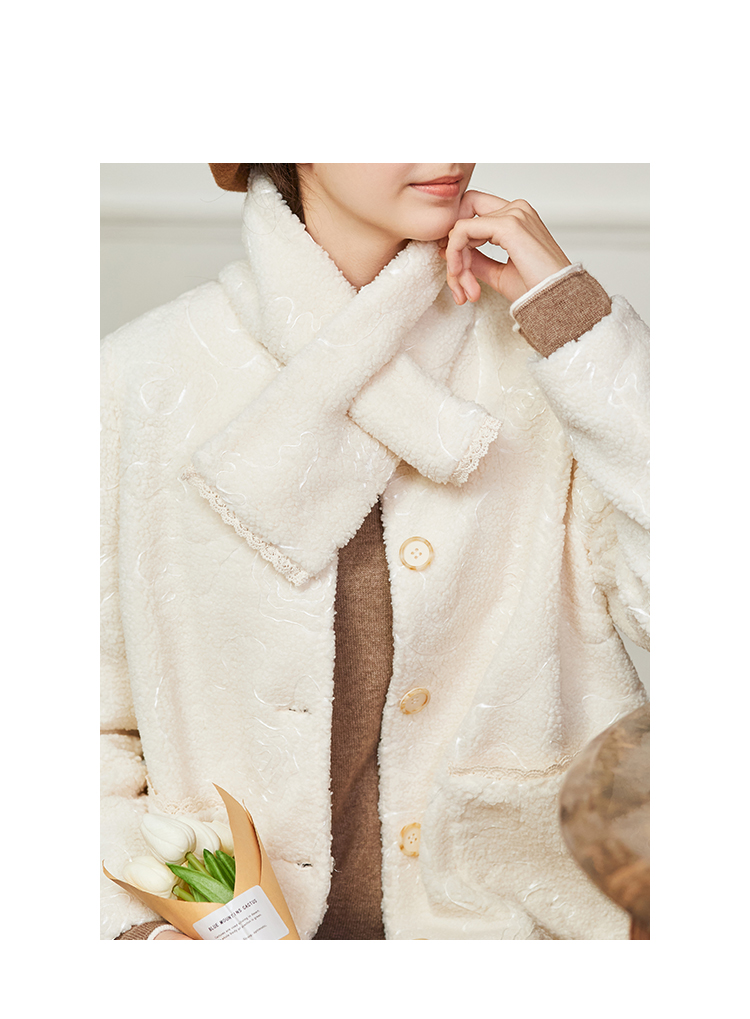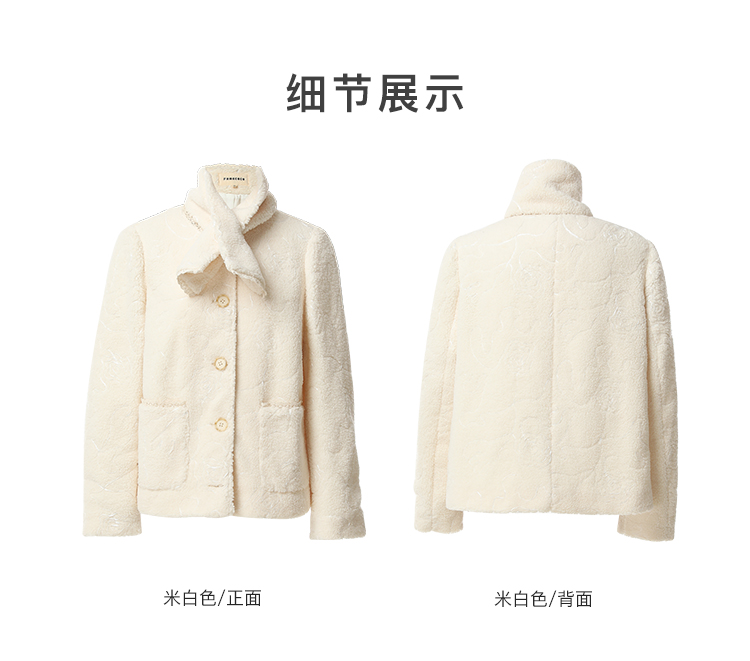 Famecoco范可儿保暖毛绒外套女秋冬附围巾FAB8AB023