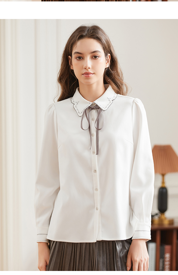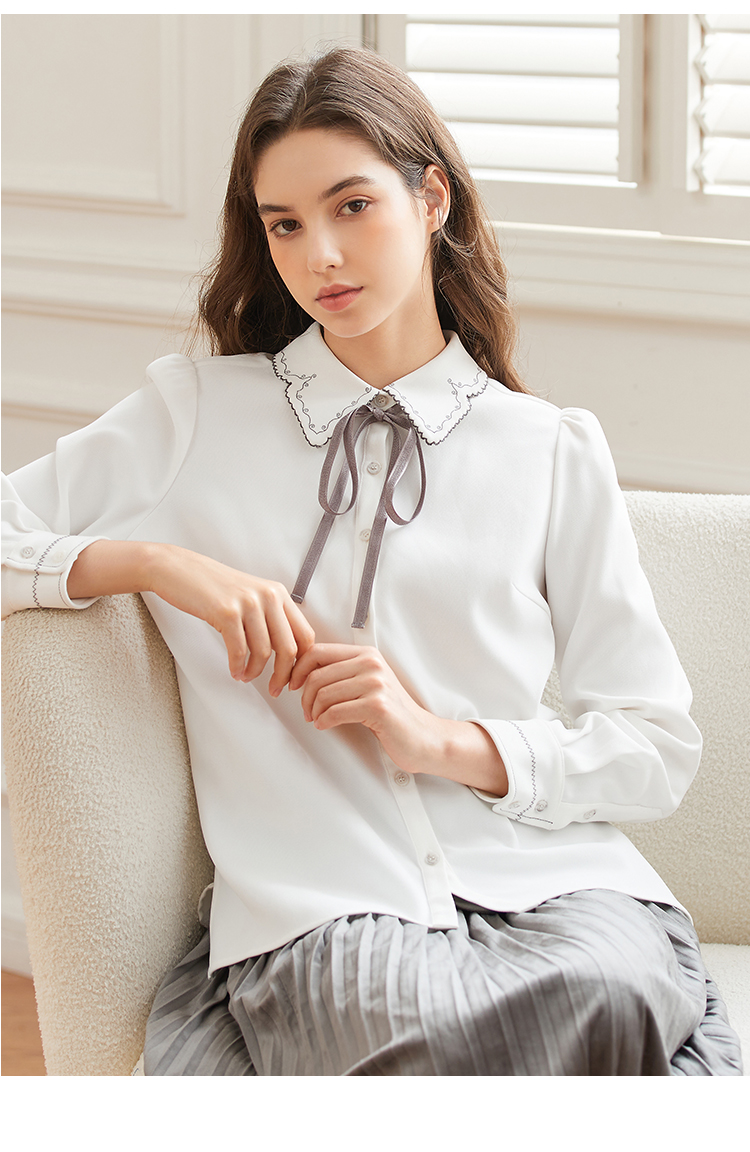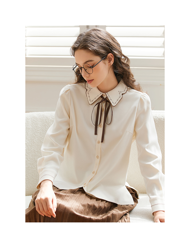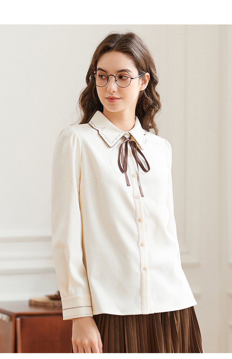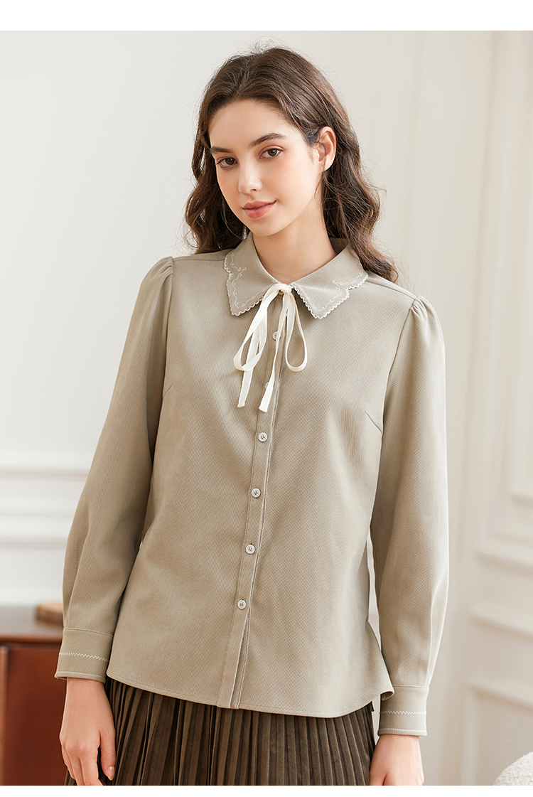 Famecoco范可儿女士系带长袖衬衣优雅通勤FAB8BH021