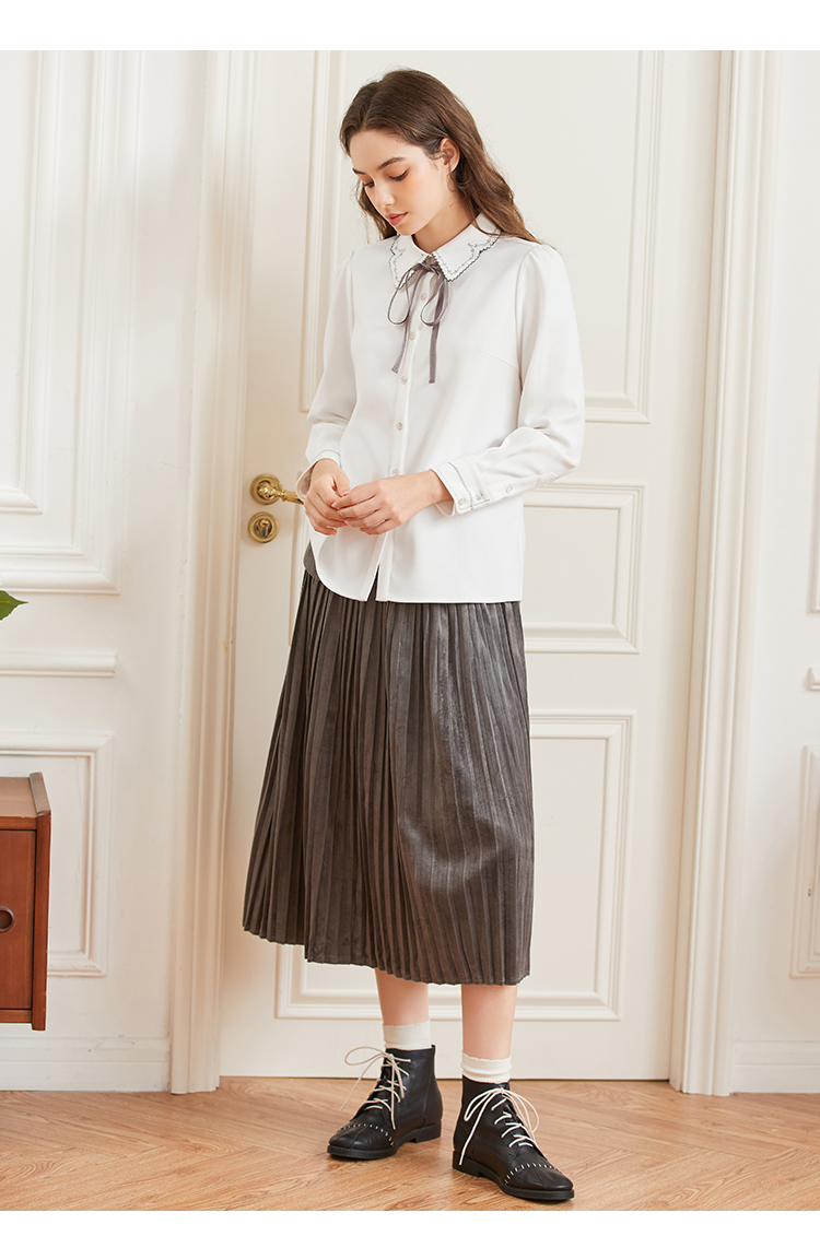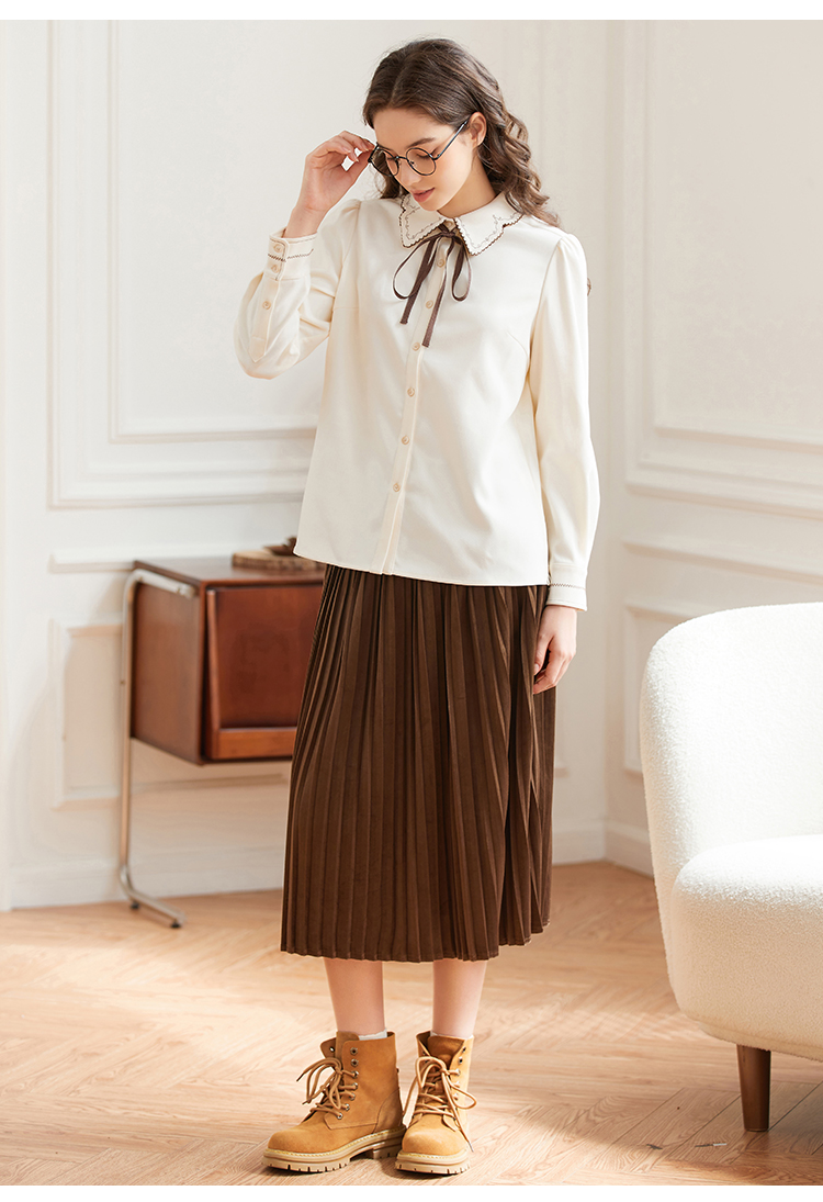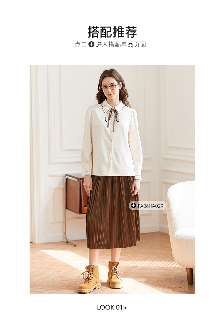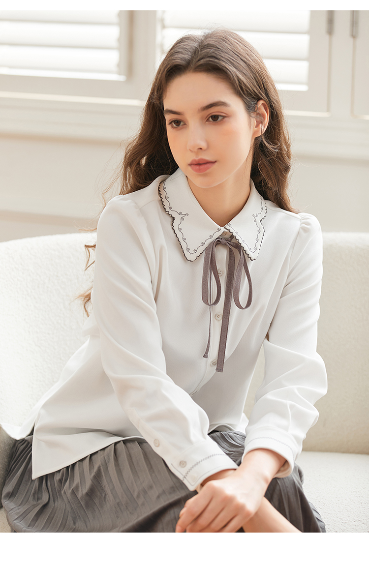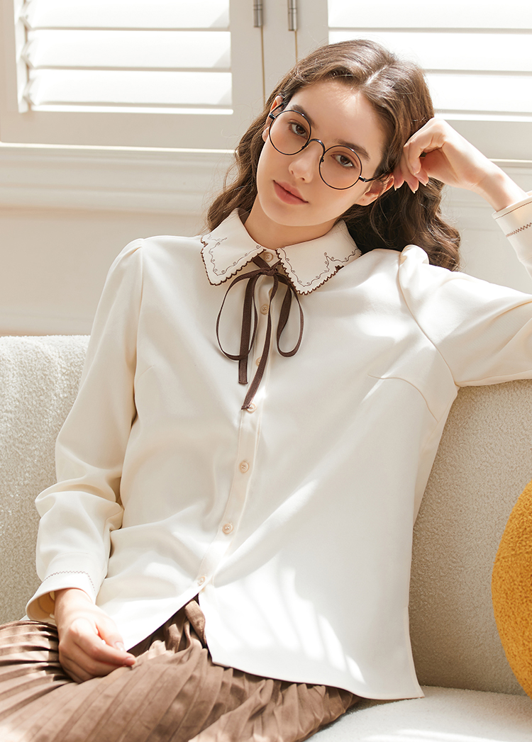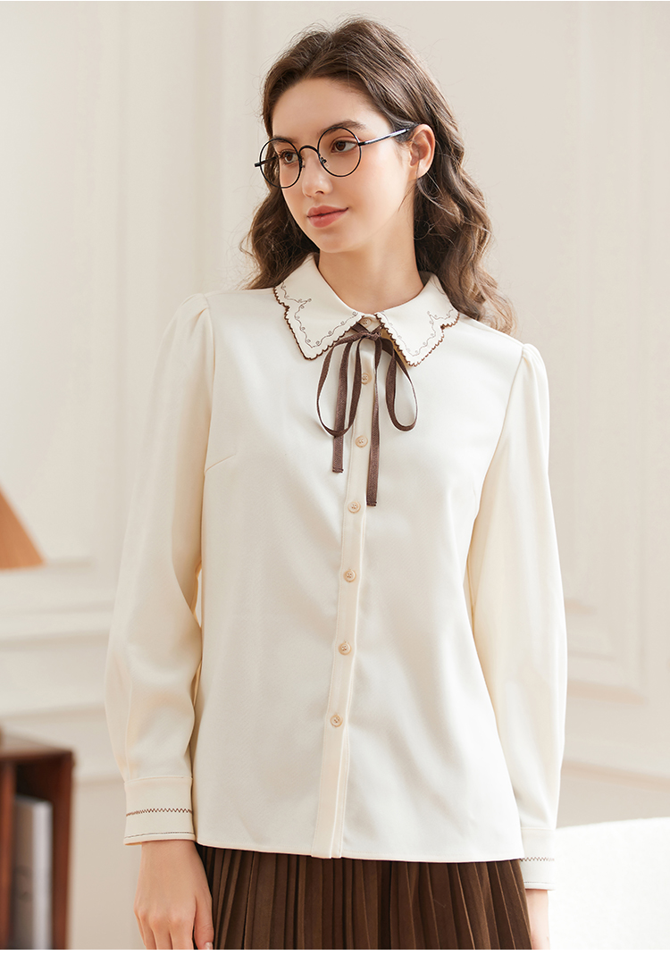 Famecoco范可儿女士系带长袖衬衣优雅通勤FAB8BH021