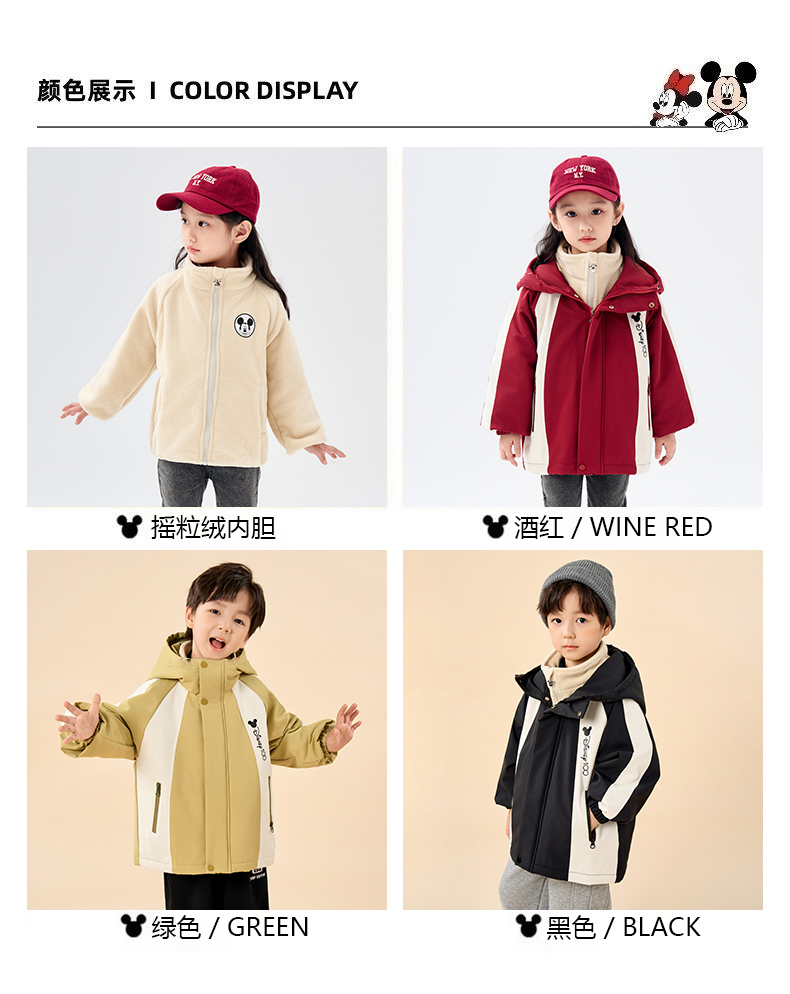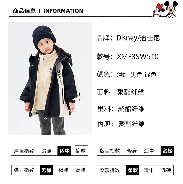 Disney/迪士尼XH儿童棉服外套男女童两件套连帽冲锋外套XME3SW510