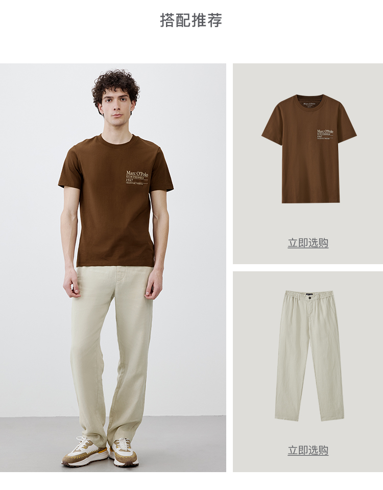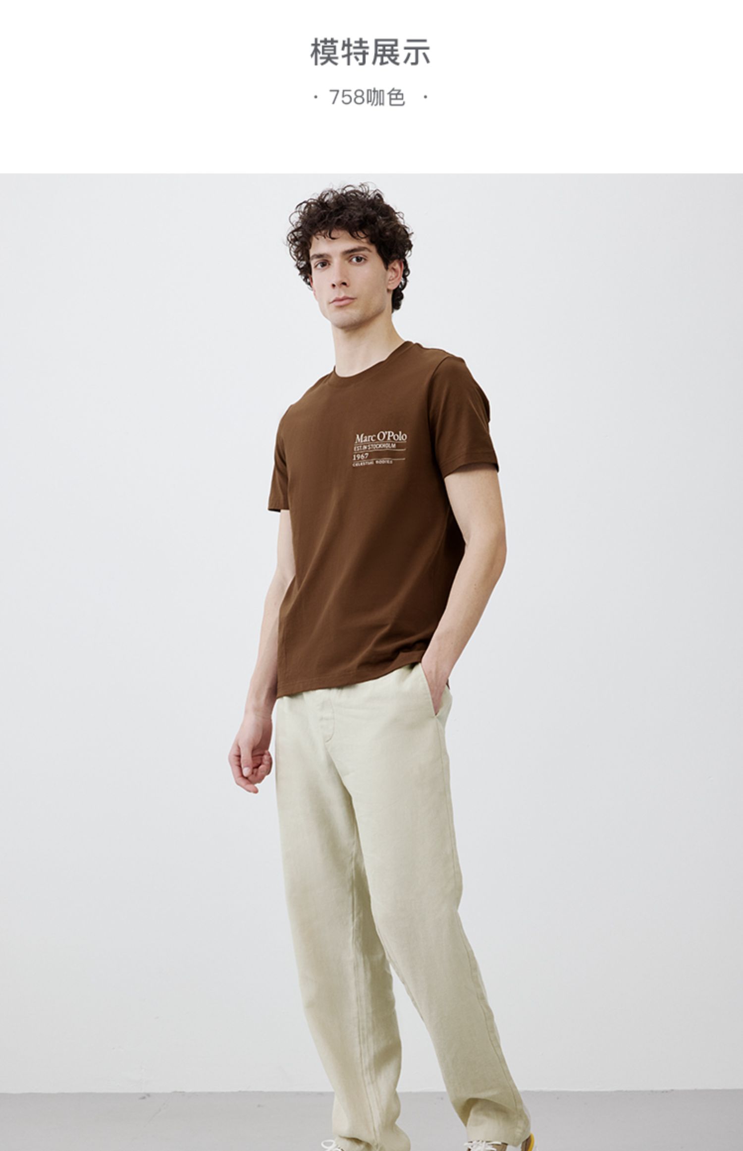 Marc O'Polo/MOP 夏季新款圆领*棉简约刺绣字母短袖T恤男