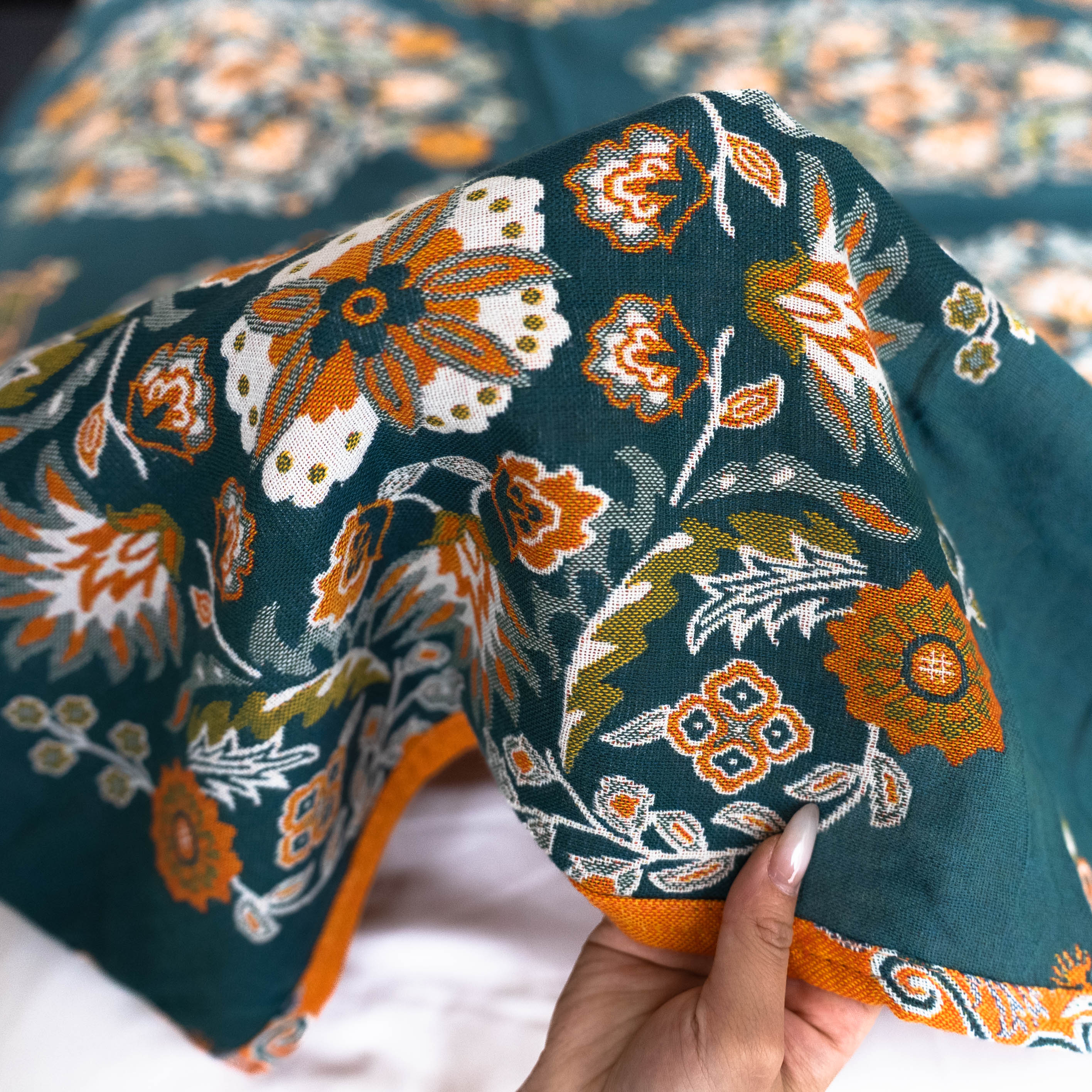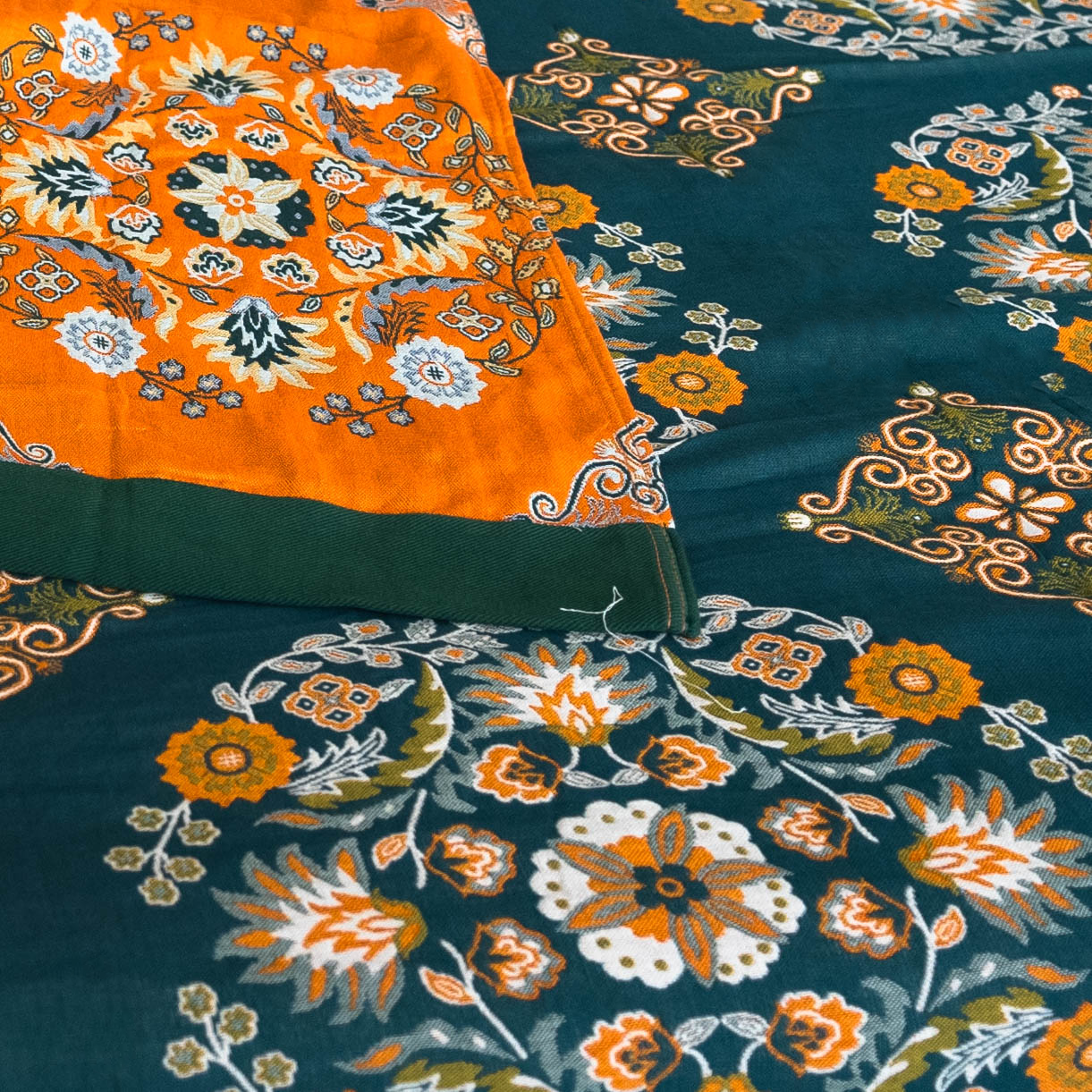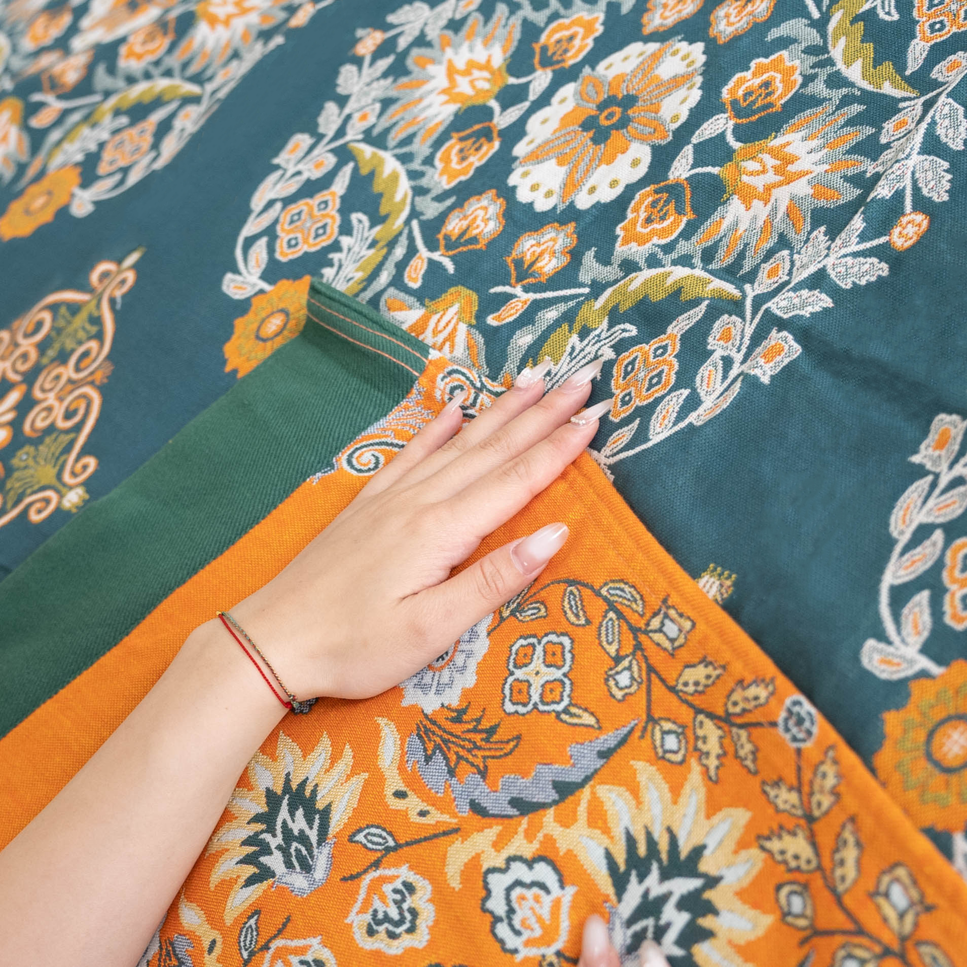 【832专区】汉棉盖毯-满园花-橘色150*200