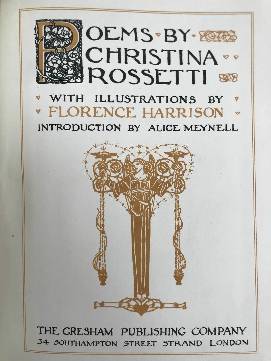 约20世纪早期 克里斯蒂娜·罗塞蒂诗集 弗洛伦斯·哈里森36幅彩色手工贴图34幅黑白插图 漆布精装16开