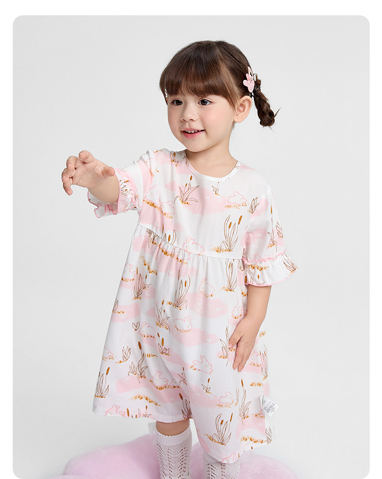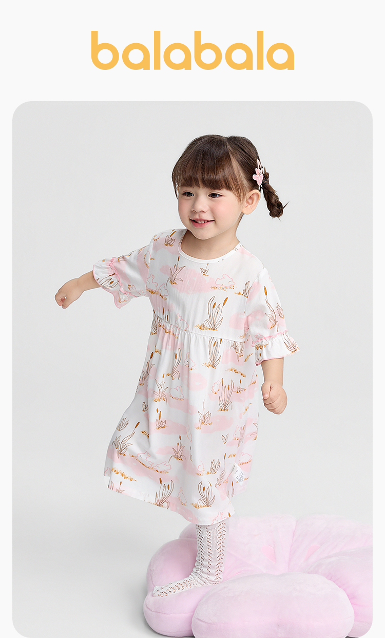 巴拉巴拉宝宝裙子夏季新款女童睡裙空调服防着凉儿童家居裙甜美萌